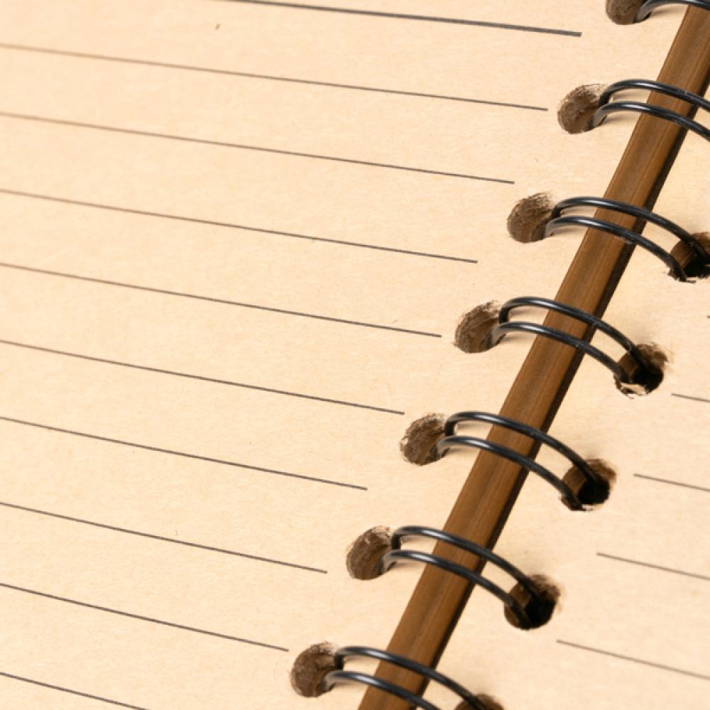Блокнот формата A5 из переработанного картона с двойным спиральным кольцом. Листы бумаги FSC из переработки. 60 листов линейной бумаги.