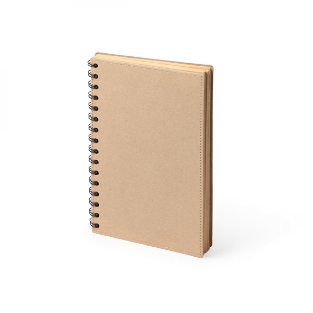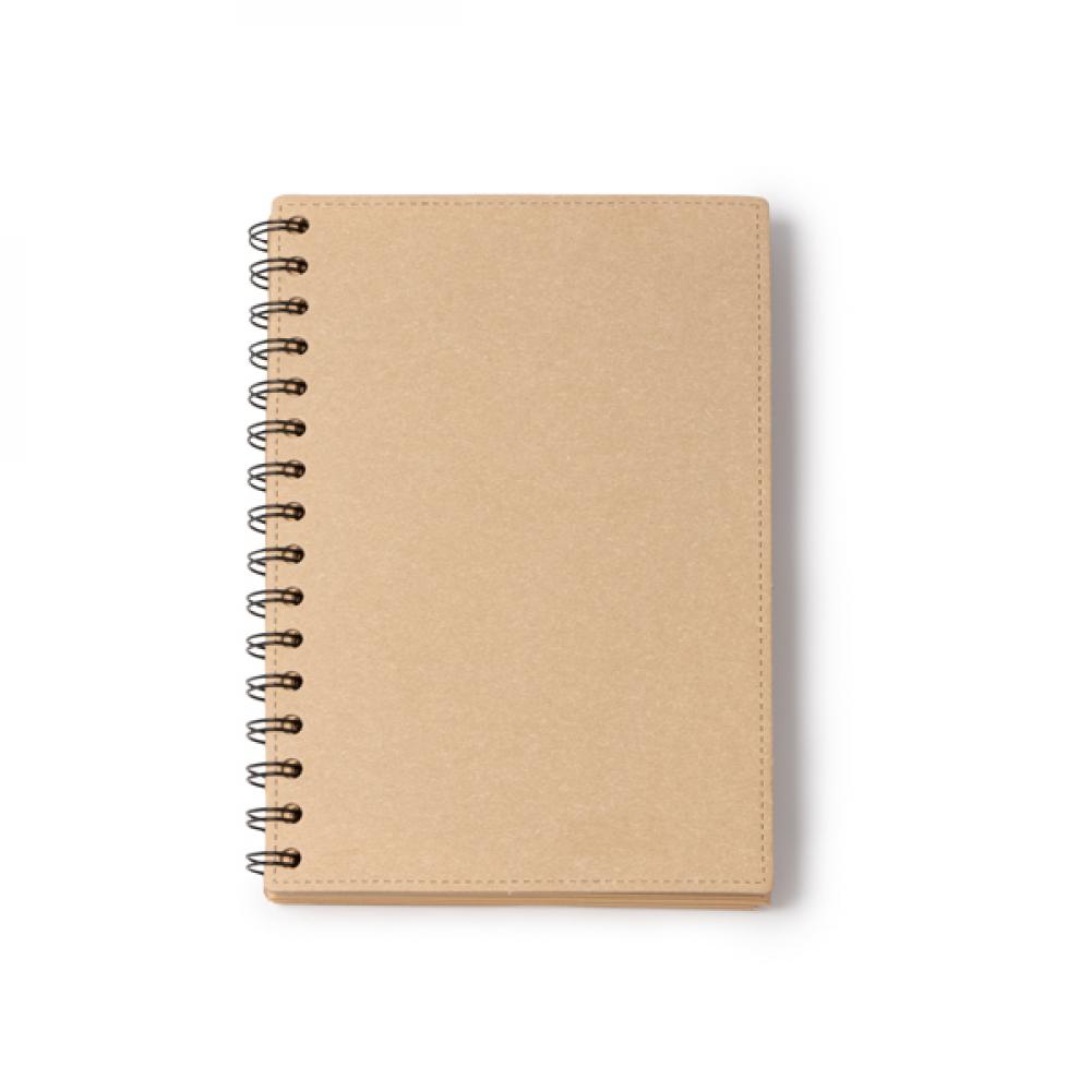 Блокнот формата A5 из переработанного картона с двойным спиральным кольцом. Листы бумаги FSC из переработки. 60 листов линейной бумаги.
