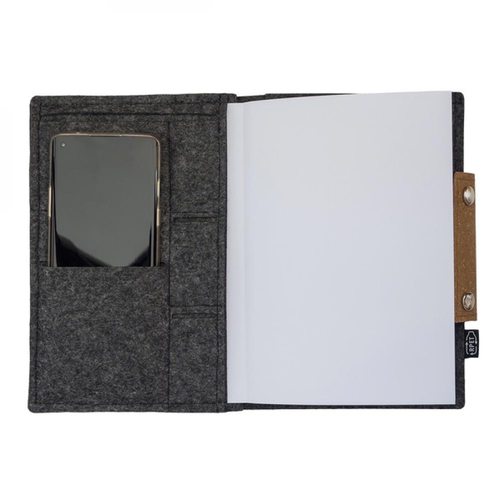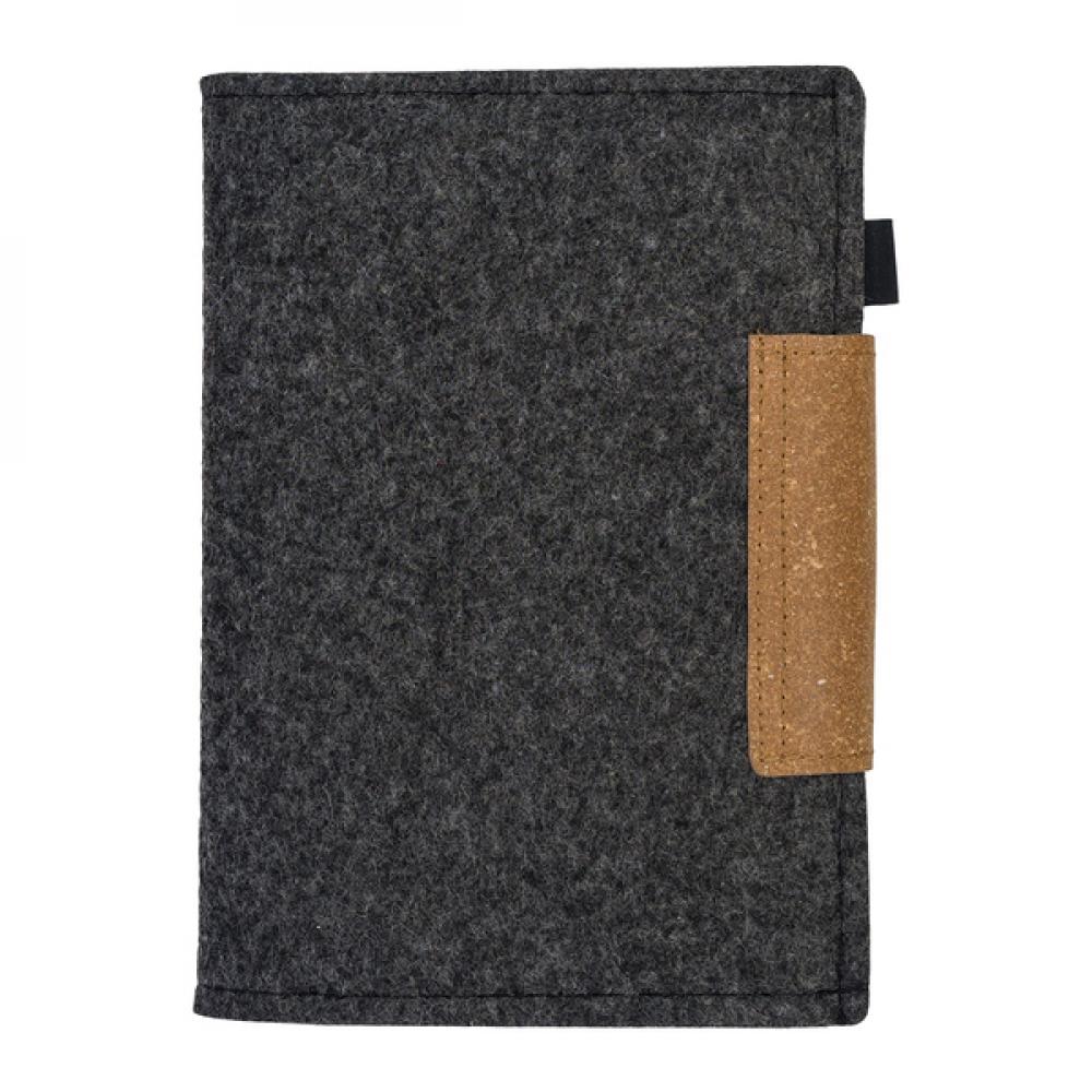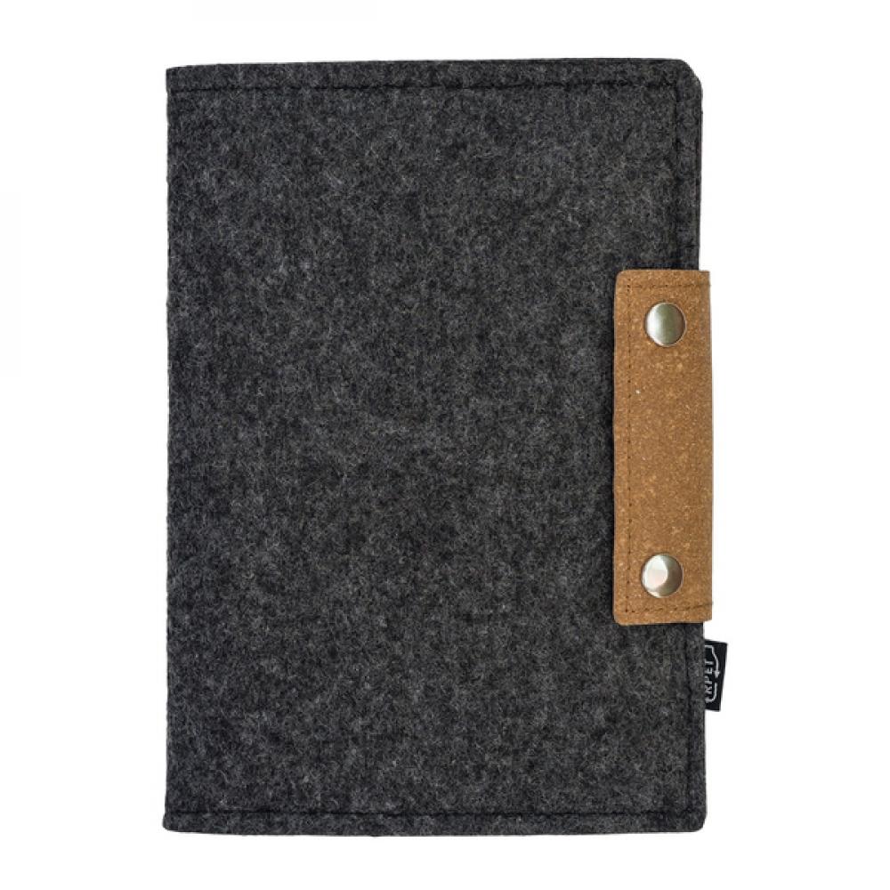 Блокнот/органайзер в фетровой обложке формата А5 с застежкой из переработанной кожи. Внутри чехла есть карманы, например, для телефона, ручки и визитных карточек. Сменный блокнот формата А5 с подкладкой (80 листов 70 гсм).