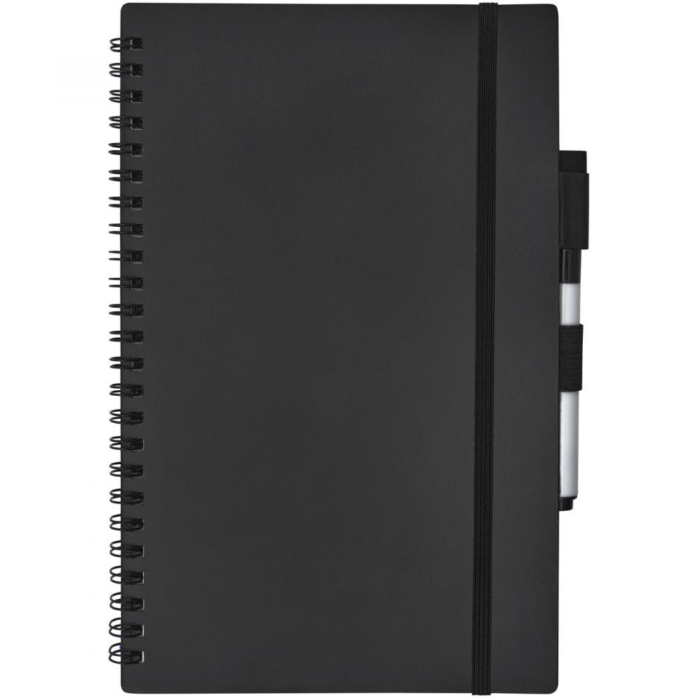 Экологичный блокнот, ориентированный на сокращение использования бумаги для сохранения окружающей среды. После записи заметок, рисования или мозгового штурма страницы можно очистить с помощью ластика на маркере и использовать снова. Также страницы можно очистить обычной тканевой салфеткой (в комплект не входит). В блокноте 20 листов (40 страниц) с половиной в точку и половиной пустыми, а также черный маркер для письма.