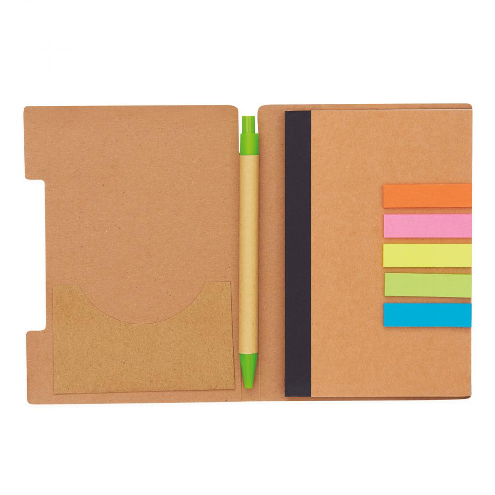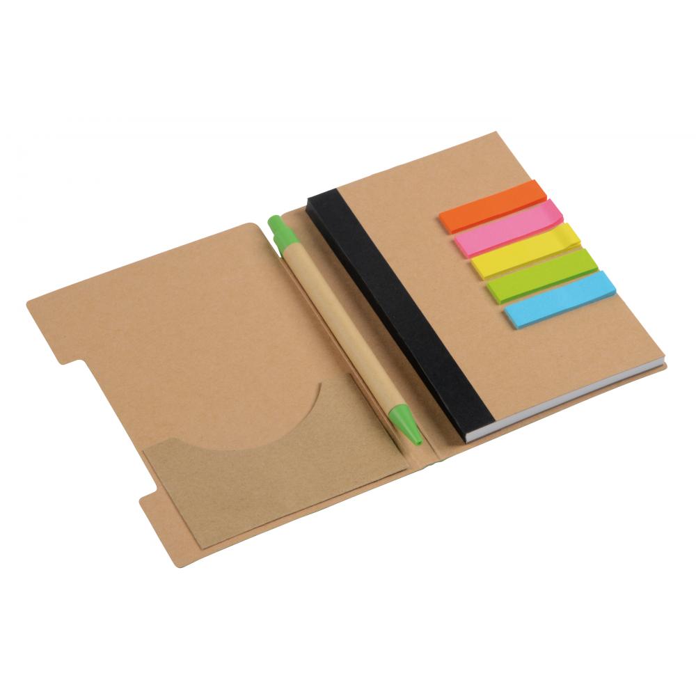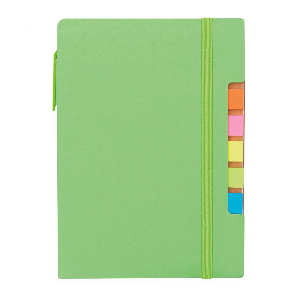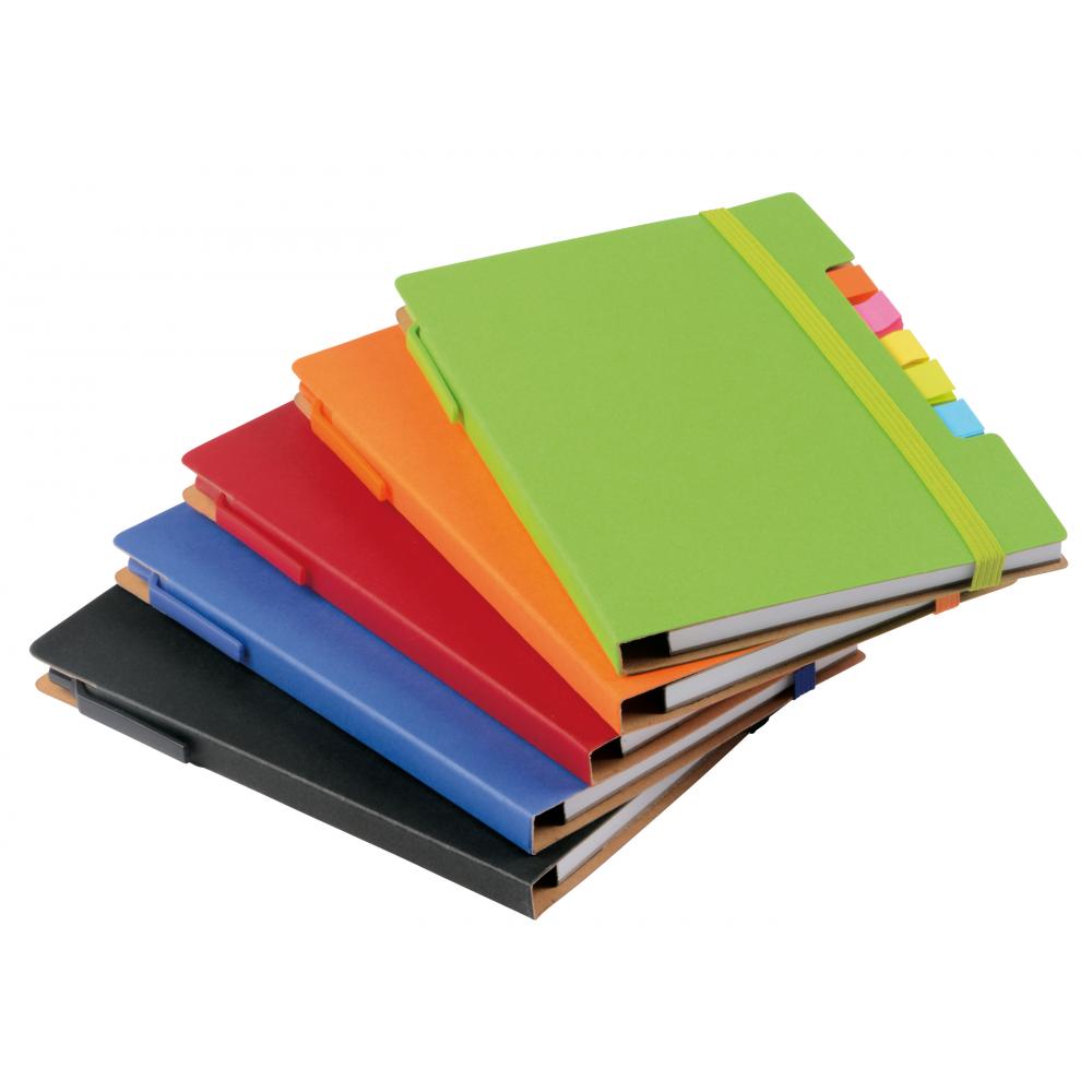 Ноутбук PENZ: удобный размер с закругленными углами, вкл. шариковая ручка из картона (черные чернила), эластичный ремешок соответствующего цвета, 70 страниц, 70 г / м2, 5 разноцветных маркеров страниц - из перерабатываемых материалов