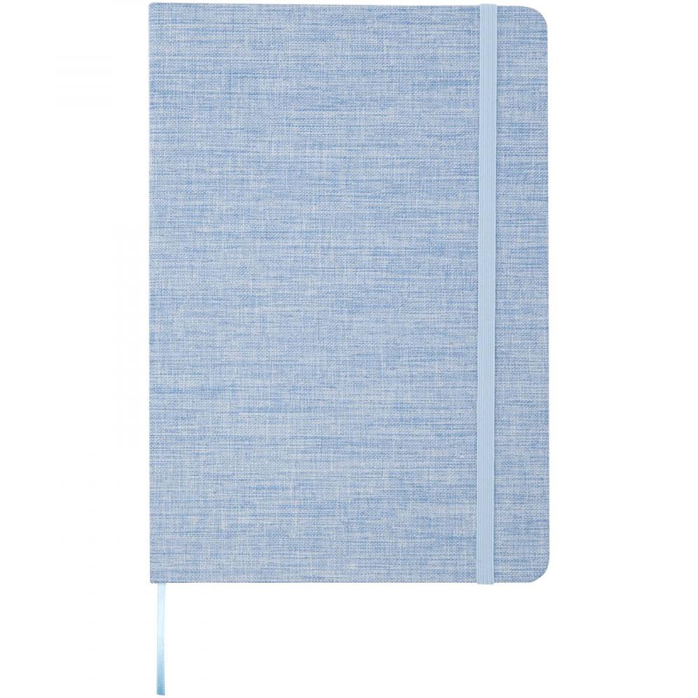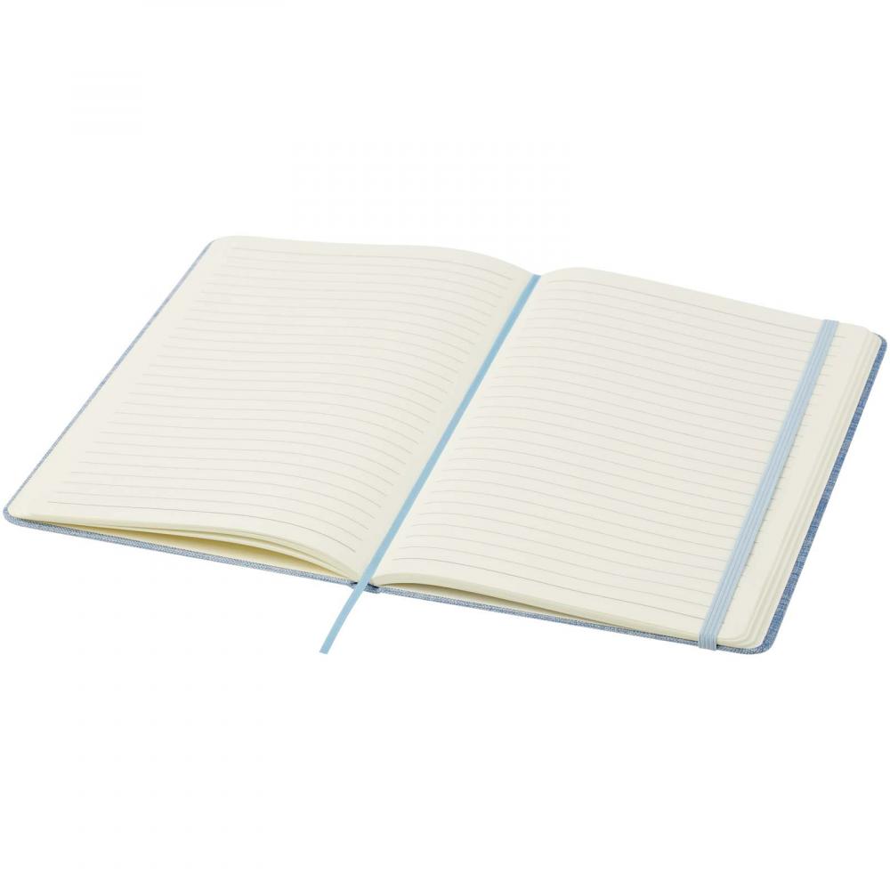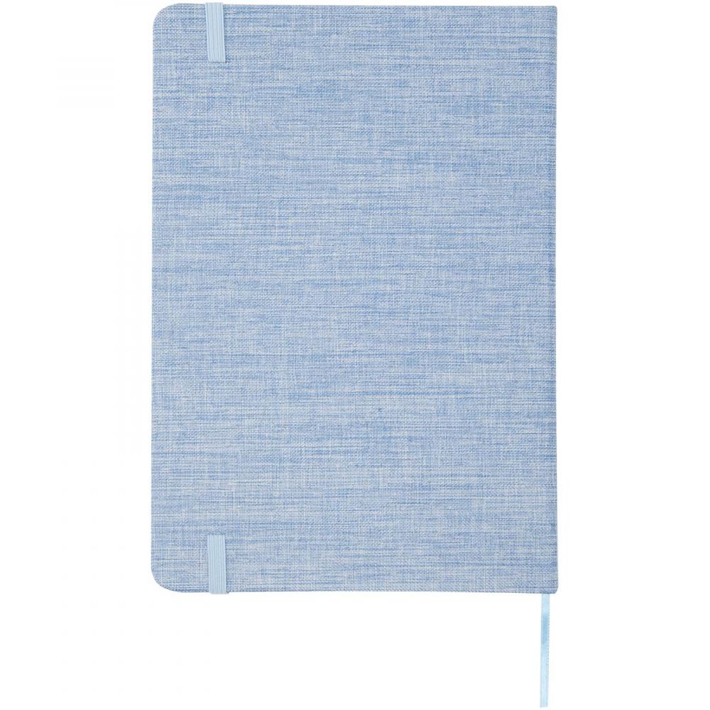 Тетрадь в твердой обложке формата A5, изготовленная из переработанного хлопка, содержит 80 линованных листов бумаги плотностью 70 г/м². Тетрадь оснащена эластичной застежкой, лентой-закладкой и закругленными углами.