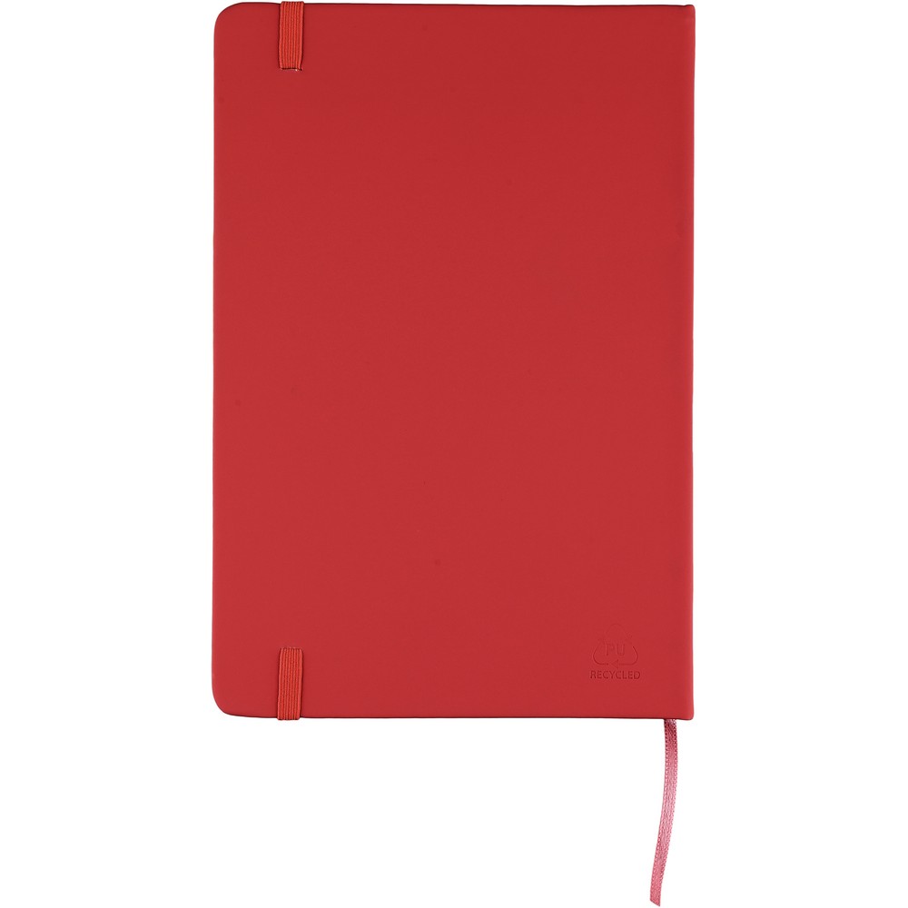 Блокнот RPET примерно формата А5 с твердой обложкой из RPET PU, содержащий 80 линованных страниц (70 г/м²), лямку-закладку для удобного отмечания последней страницы или важных заметок, дополнительную цветную резинку для закрытия, включает значок о переработке на оборотной стороне.