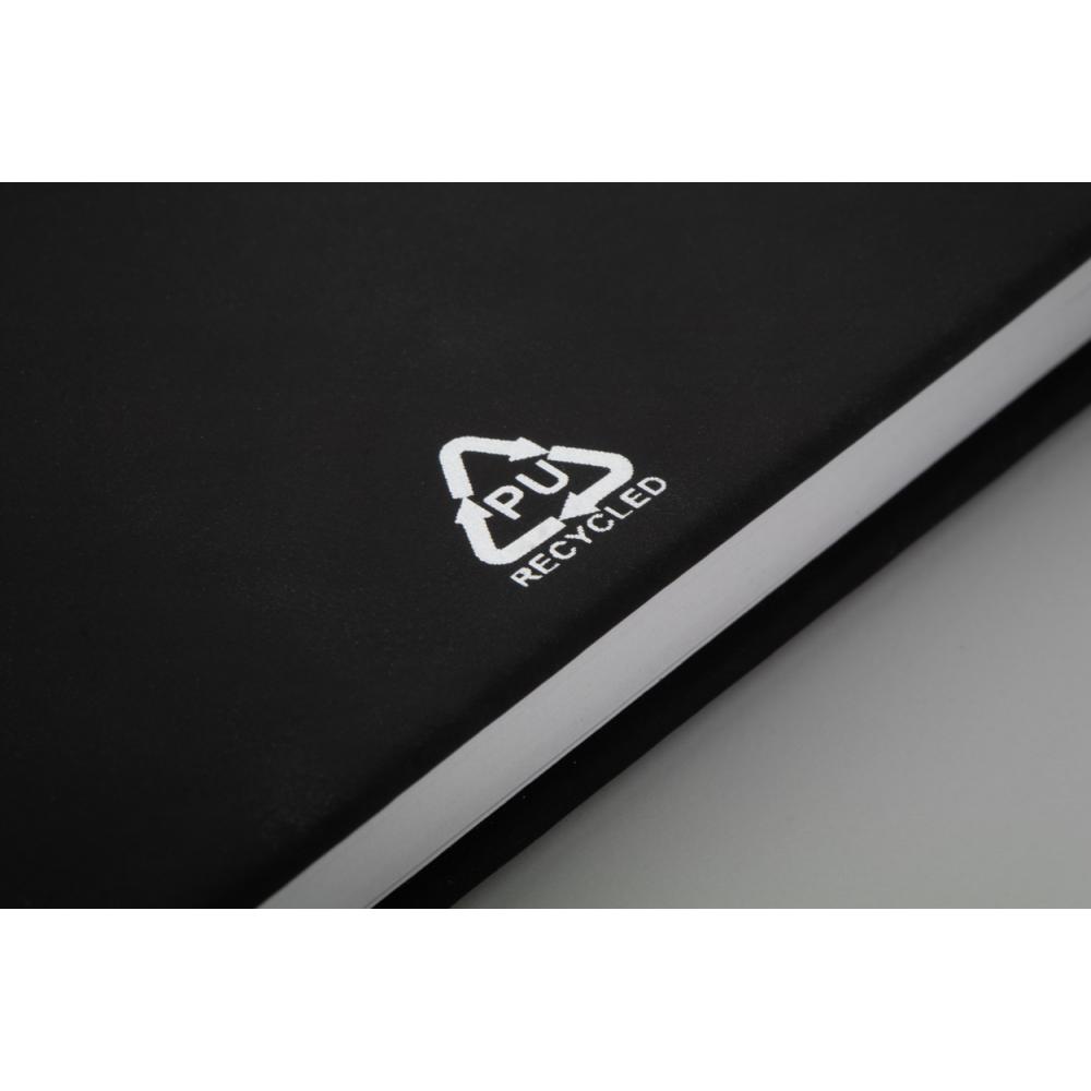 Блокнот с обложкой из переработанной кожи PU с 100 линованными листами из переработанной бумаги. Соответствующая цвету закладка и резинка. Размер A5.