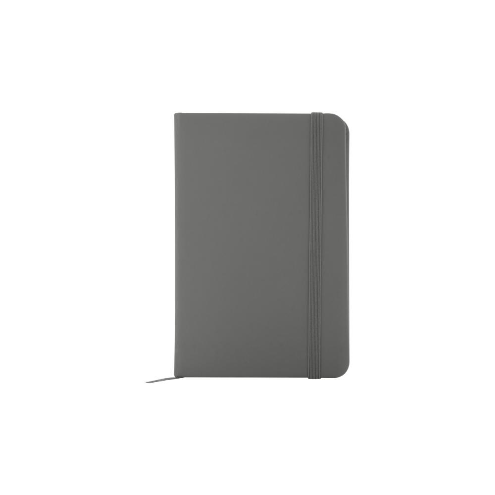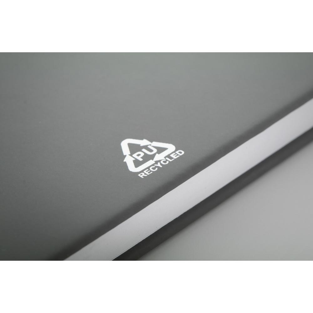 Блокнот с обложкой из переработанной кожи PU с 100 линованными листами из переработанной бумаги. Соответствующая цвету закладка и резинка. Размер A6.