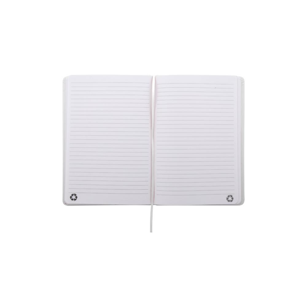 Блокнот с обложкой из переработанной кожи PU с 100 линованными листами из переработанной бумаги. Соответствующая цвету закладка и резинка. Размер A5.
