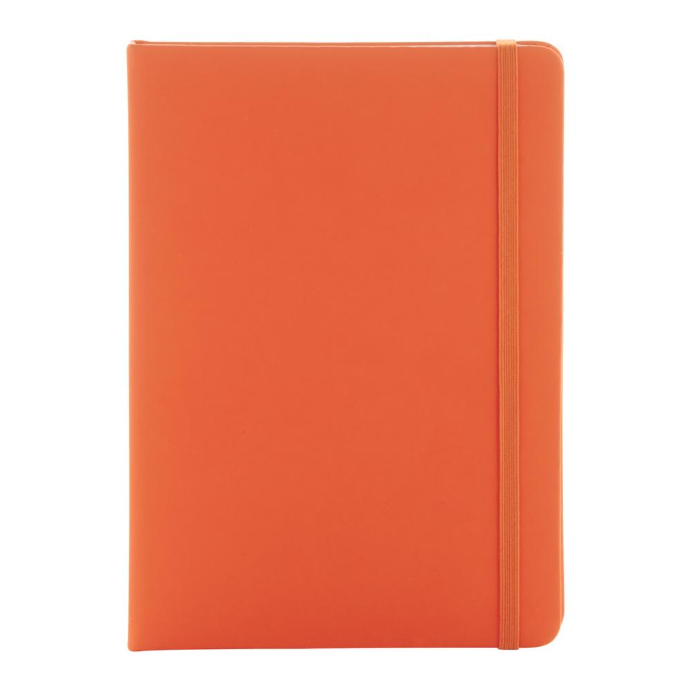 Блокнот с переплетом из переработанной искусственной кожи, содержащий 100 чистых листов из переработанной бумаги. Соответствующая закладка и резинка в том же цвете. Размер A5.