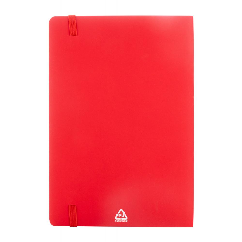 Блокнот с мягкой обложкой из переработанной кожи PU с 80 линованными листами из переработанной бумаги. С закладкой и резинкой в подходящем цвете. Размер A5.