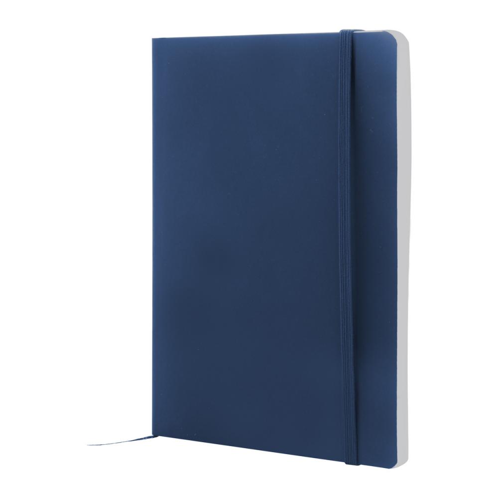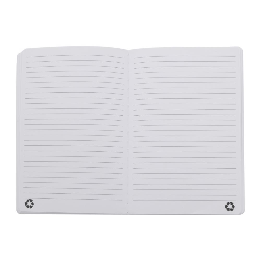 Блокнот с мягкой обложкой из переработанной кожи PU с 80 линованными листами из переработанной бумаги. С закладкой и резинкой в подходящем цвете. Размер A5.