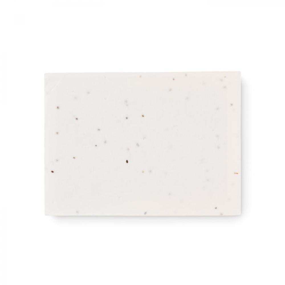 Блокнот с набором стикеров из бумаги, содержащей семена белой ромашки. Включает большой блок листков для заметок и 5 блоков стикеров разных цветов. Поместите фрагменты бумаги в почву, чтобы вырастить цветок