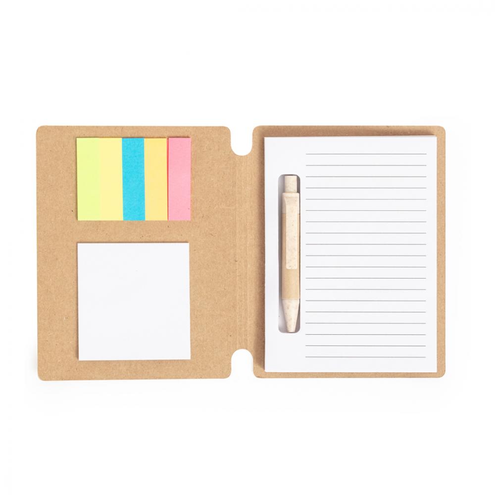 Характеристики Блокнот из переработанного картона. Включает 70 белых листов с одним полосатым макетом, 15 самоклеящихся заметок размером 5х6,5 см и 75 мини-самоклеящихся заметок размером 1,2х4,5 см различных цветов. С шариковой ручкой из переработанного картона и соломы пшеницы, механизм с кнопкой и синим чернилами. Представлен в индивидуальном бумажном пакете. Переработанный картон получают из повторного использования производственных излишков и переработки бумаги в конце ее срока службы, что делает его экологически чистым и устойчивым материалом. 70 листов блокнота. 15 самоклеящихся заметок 6 х 6,5 см. 75 мини-самоклеящихся заметок 1,2 х 4,5 см. В комплекте переработанная картонная ручка. Переработанный картон