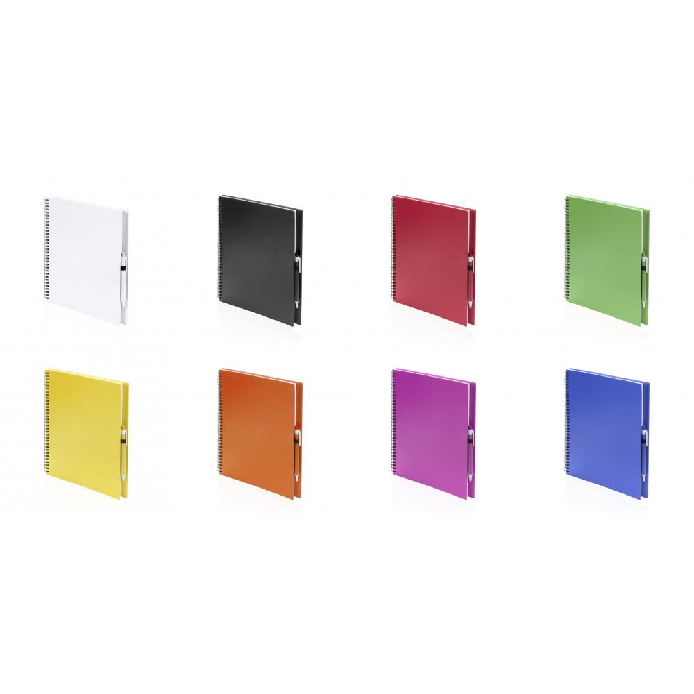 Особенности Кольцевой блокнот с мягкими на ощупь обложками из прочного переработанного картона и шариковой ручкой из переработанного картона соответствующего цвета. Яркие цвета, 80 чистых листов и держатель для шариковой ручки на задней крышке. Твердая обложка. 80 Листов. Ручка Из Переработанного Картона Входит в Комплект Поставки