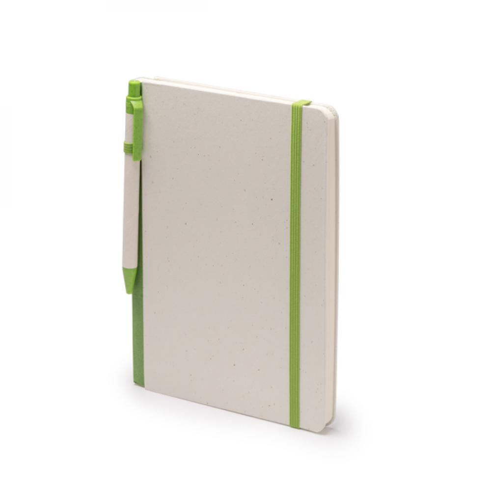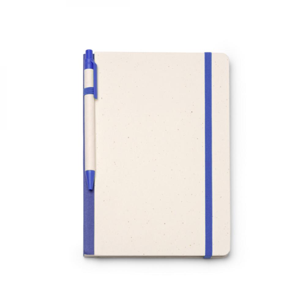Блокнот формата A5 из переработанных молочных картонов. Жесткая обложка с эластичной лентой и закладкой, соответствующими цвету шариковой ручки. Синий чернильный стержень. 80 обычных листов. Представлен в коробке в экологичном дизайне.