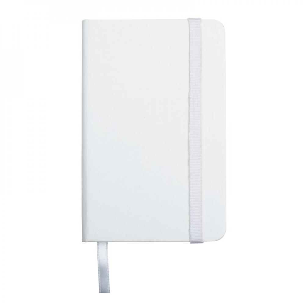 Карманный блокнот в твердом переплете. Закрывается на эластичную тесьму. Размер 90x140. 80 листов в клетку, белого цвета. Возможна полноцветная печать (УФ).