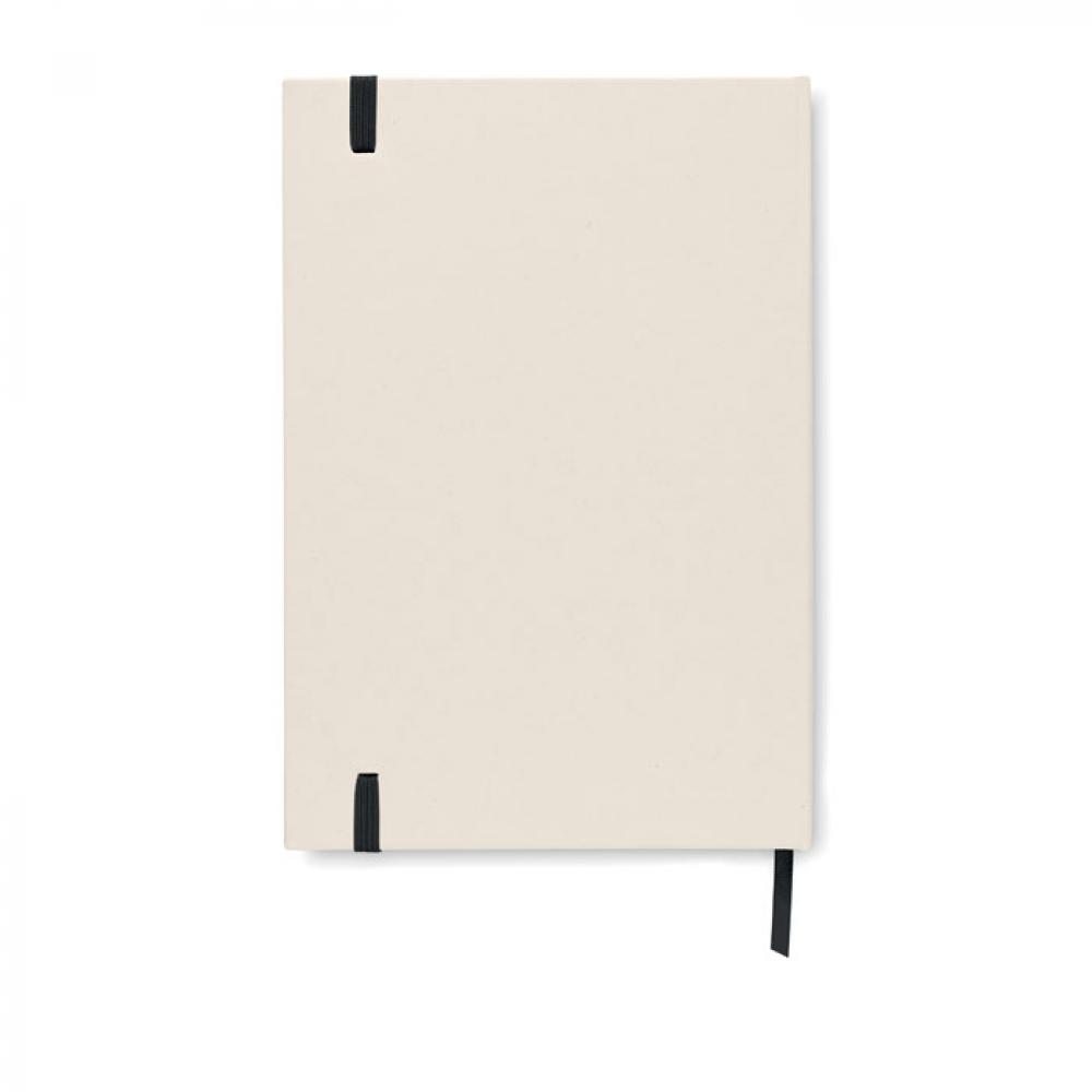 Блокнот A5 на резинке в твердой обложке, изготовленный на 70% из переработанного картона и на 30% из переработанной бумаги. В переплете. 160 линованных страниц (80 листов 80 gsm) из переработанной бумаги. Ленточка-закладка.