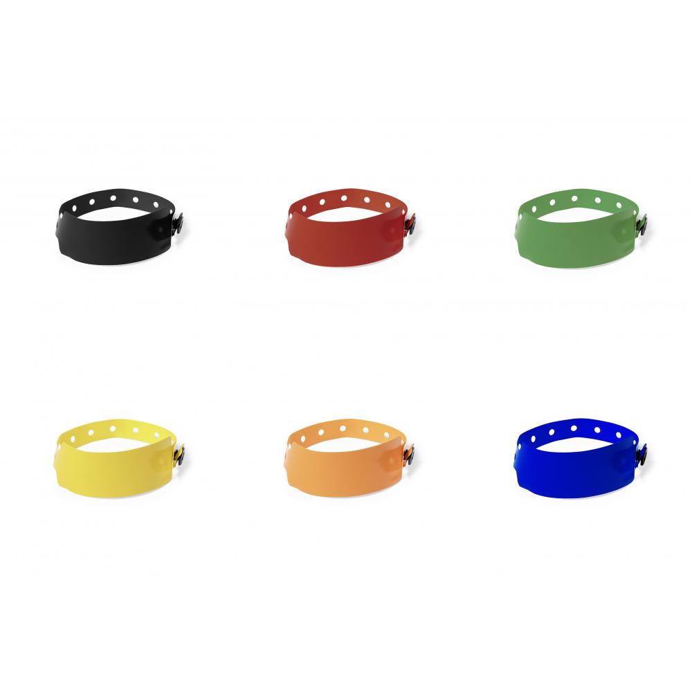 Браслет из ПВХ в широкой гамме ярких тонов. С регулируемым предохранительным замком на крючке и петле. Регулируемый. Предохранительная защелка ПВХ