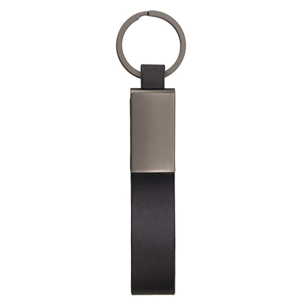 Металлический брелок в блестящем никеле с ремешком из искусственной кожи. Каждый предмет упакован в индивидуальный зип-пакет.