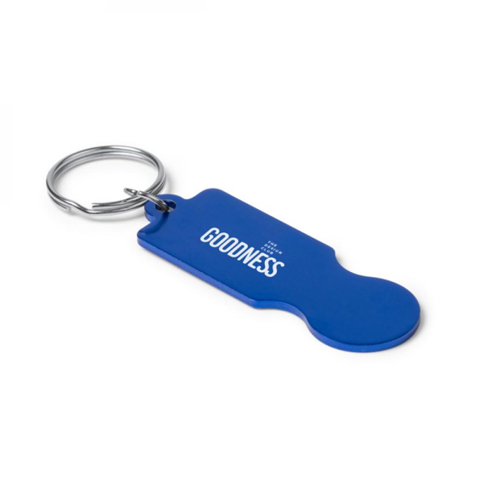 Переработанный алюминиевый монетный брелок идеально подходит для тележки в магазине.
