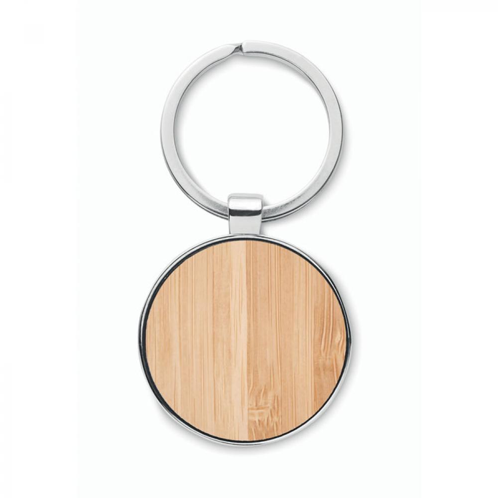 Брелок круглый из цинкового сплава с бамбуком. Бамбук является натуральным продуктом, могут быть небольшие различия в цвете FSC 100% | N5.7 | FSC-C213206