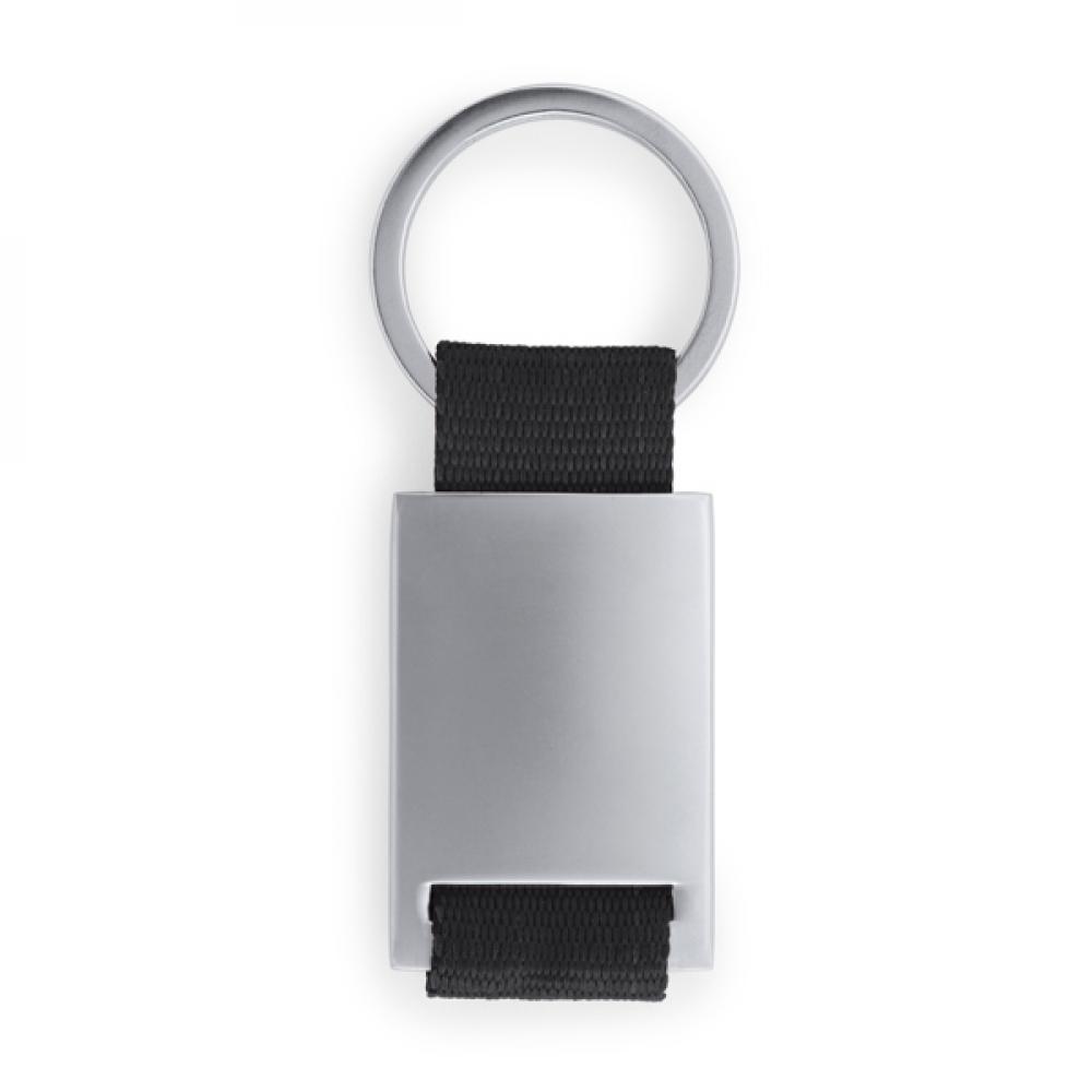 Металлический брелок с цветной полосой из полиестера.