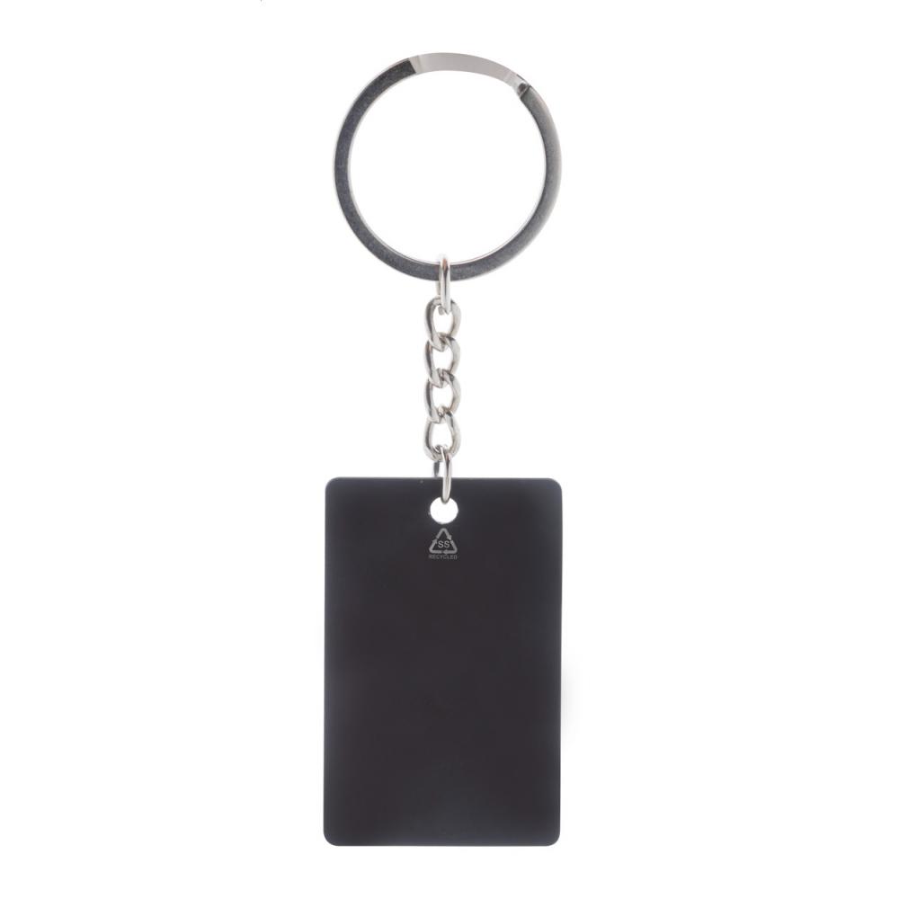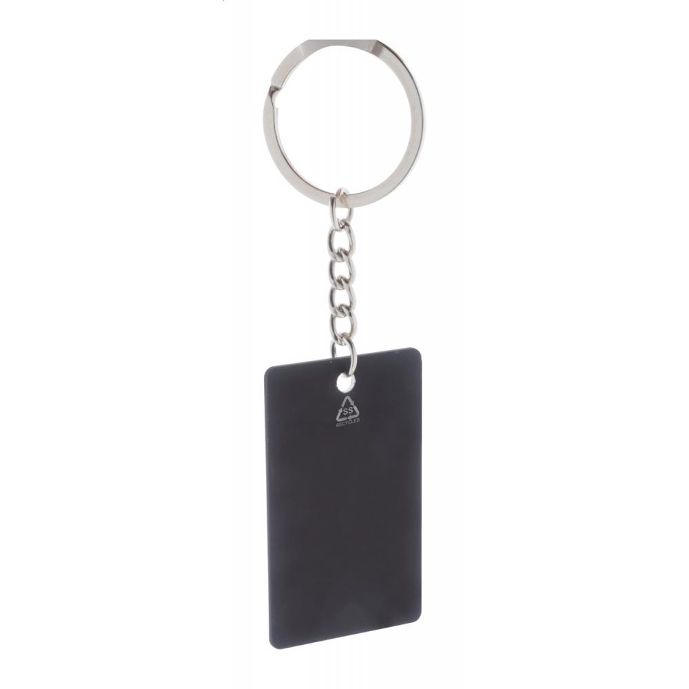 Прямоугольный, изготовленный из переработанной нержавеющей стали брелок с резиновым покрытием. Специальное покрытие для зеркальной лазерной гравировки.