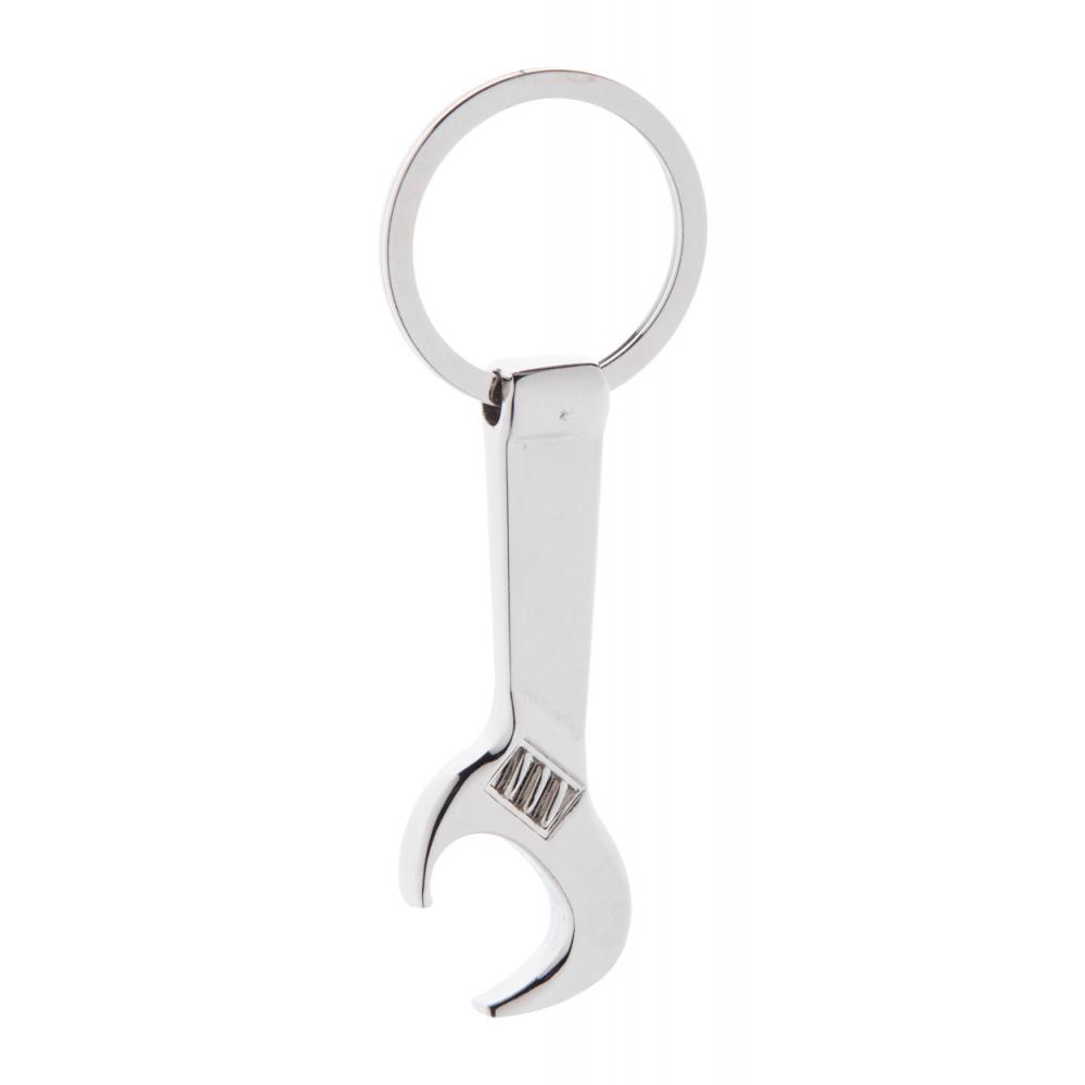 Открывашка в форме гаечного ключа из металла на кольце для ключей. В коробке из крафт-бумаги.