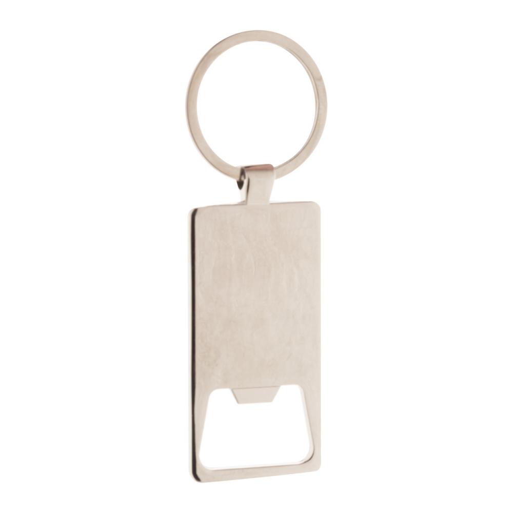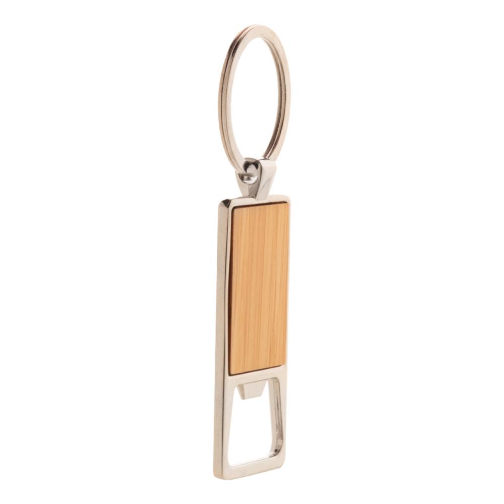 Металлический брелок с вставкой из бамбука и открывалкой для бутылок.