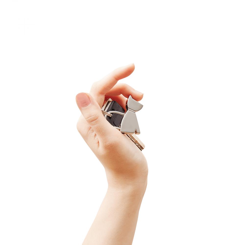 Брелок PERRO: выполнен в форме собаки, стальной трос с защелкивающимся механизмом, изготовлен из металла с хромированным покрытием высокой глянцевитости