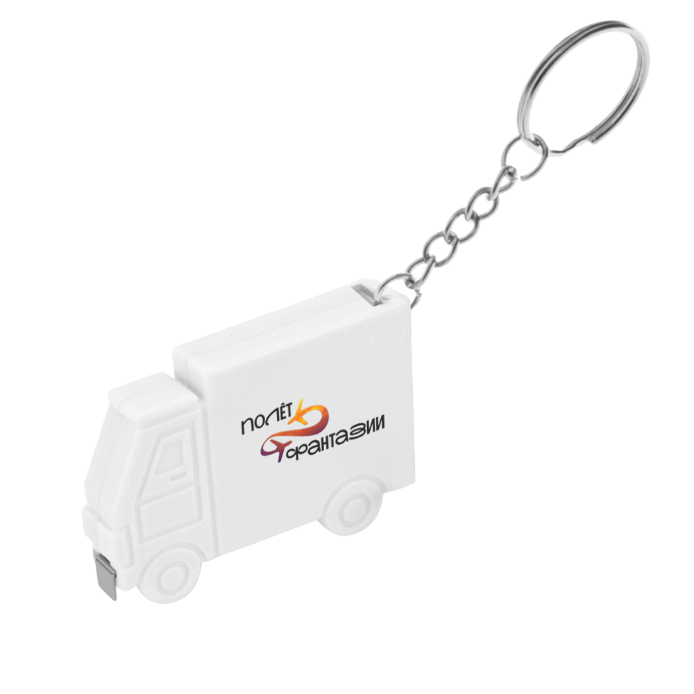 Брелок-рулетка в виде грузовика. Нанесение корпоративной символики уф-печатью или тампопечатью