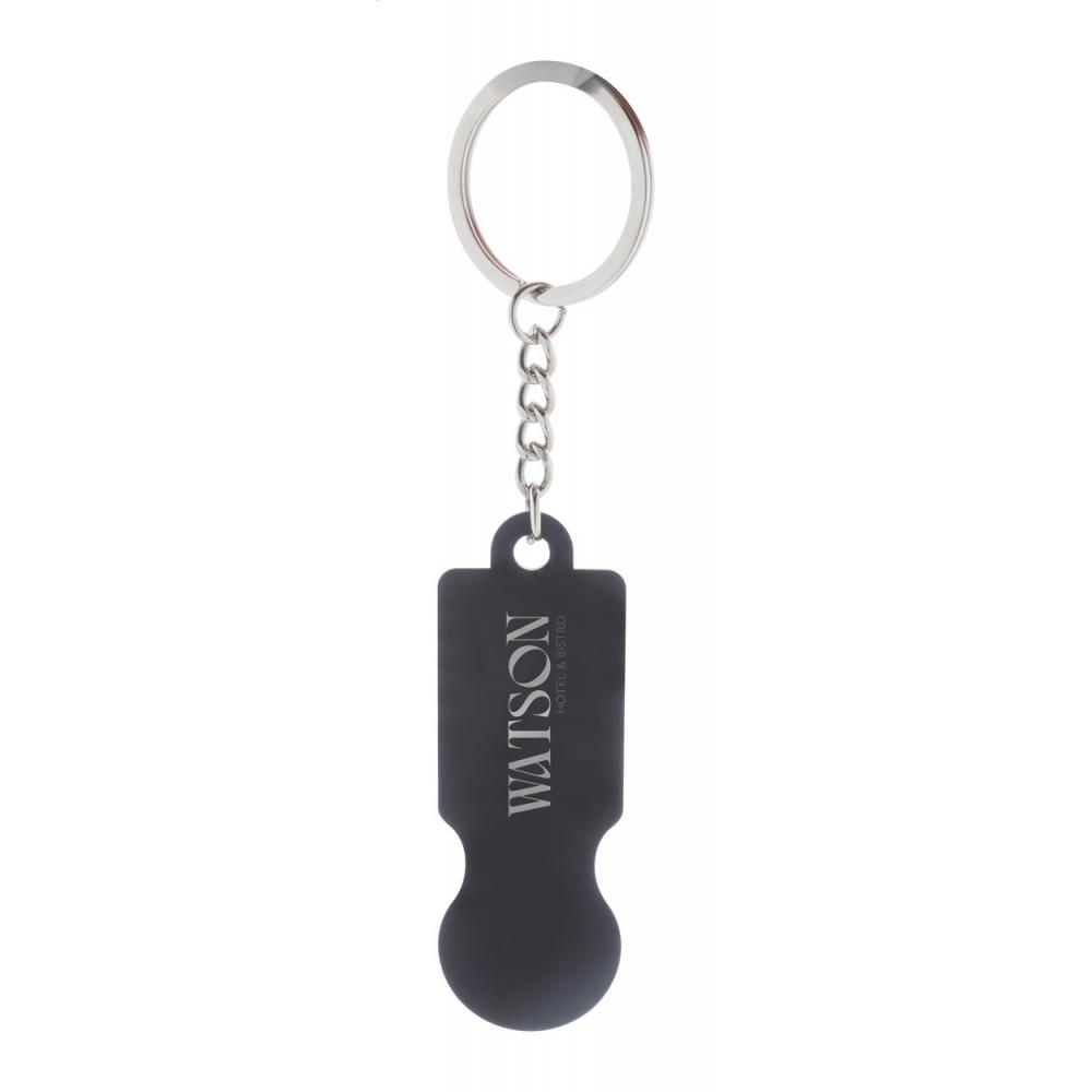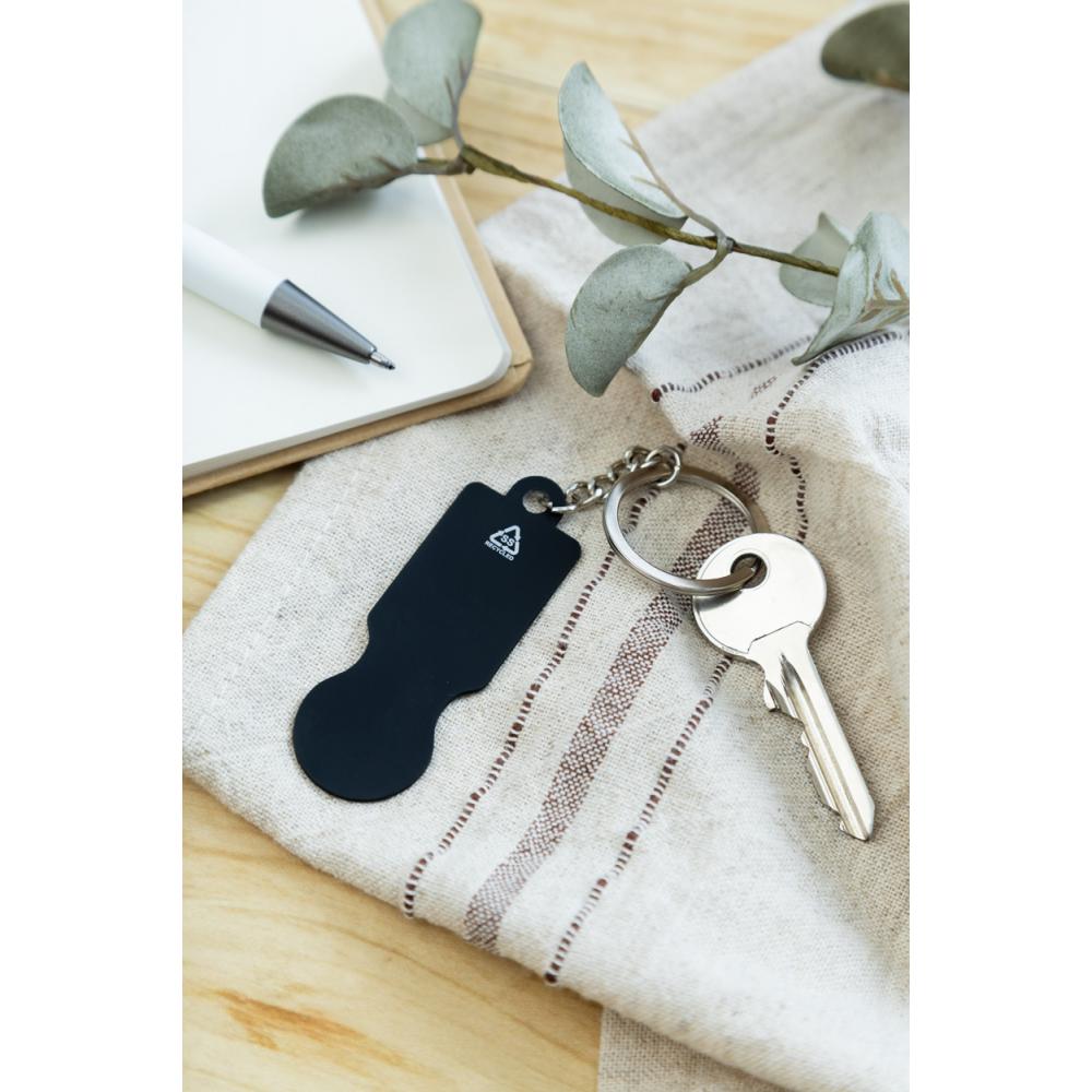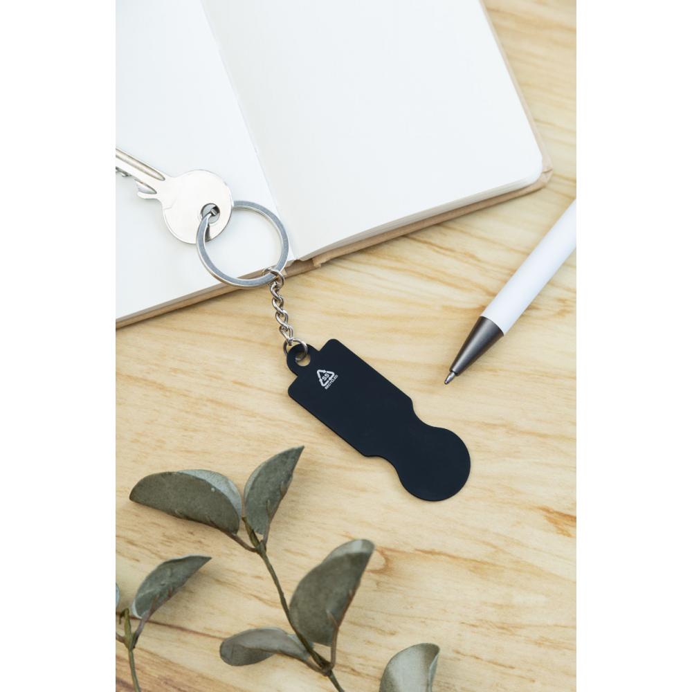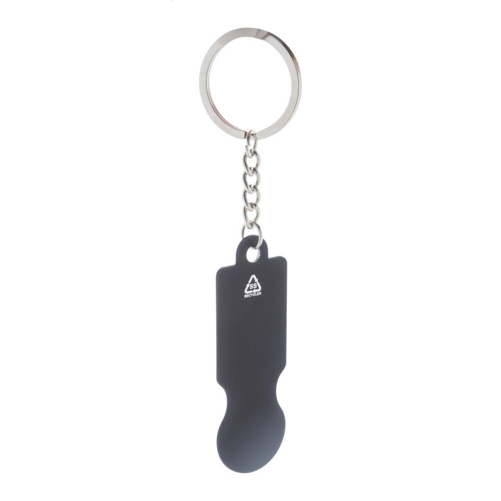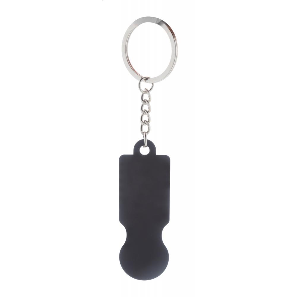 Переработанный ключниц из нержавеющей стали с резиновым покрытием и монеткой для тележки. Специальное покрытие для зеркальной лазерной гравировки.