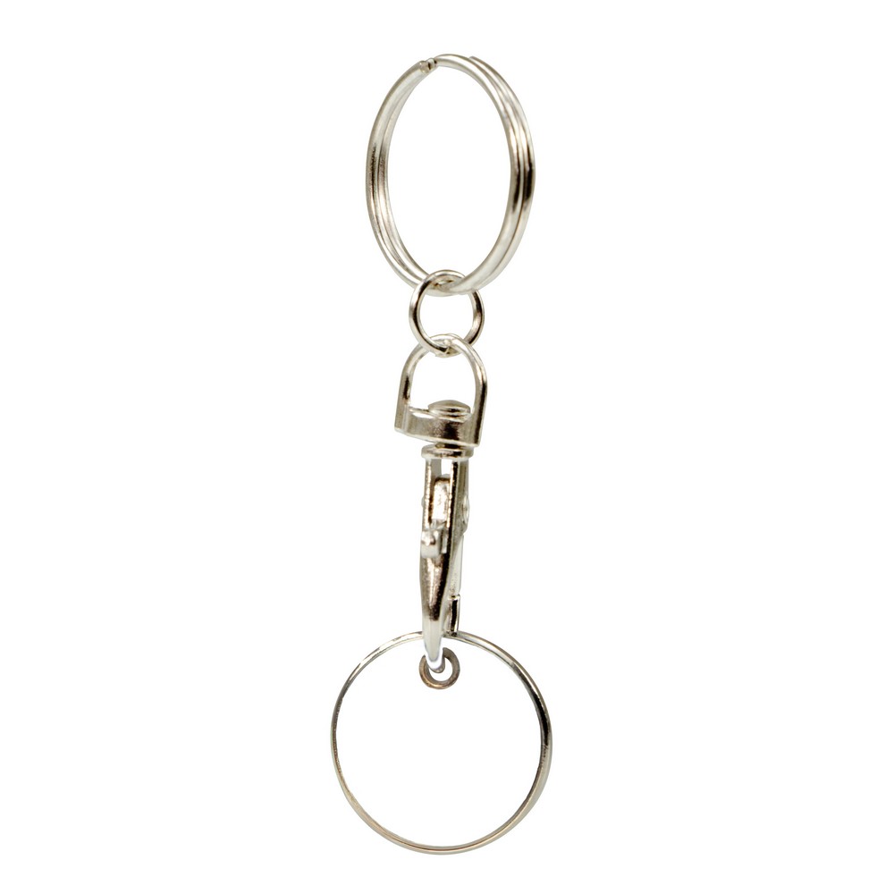 Брелок с карабином для крепления, поставляется с съемным жетоном для тележки размером € 1, изделие из металла.