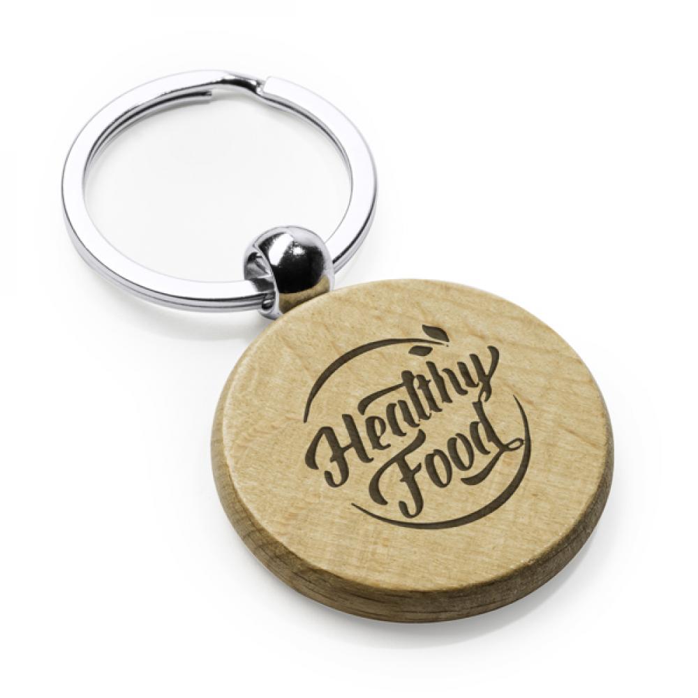 Брелок из натурального дерева в двух дизайнах с металлическим кольцом.