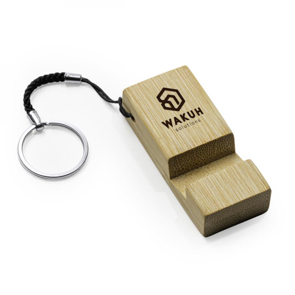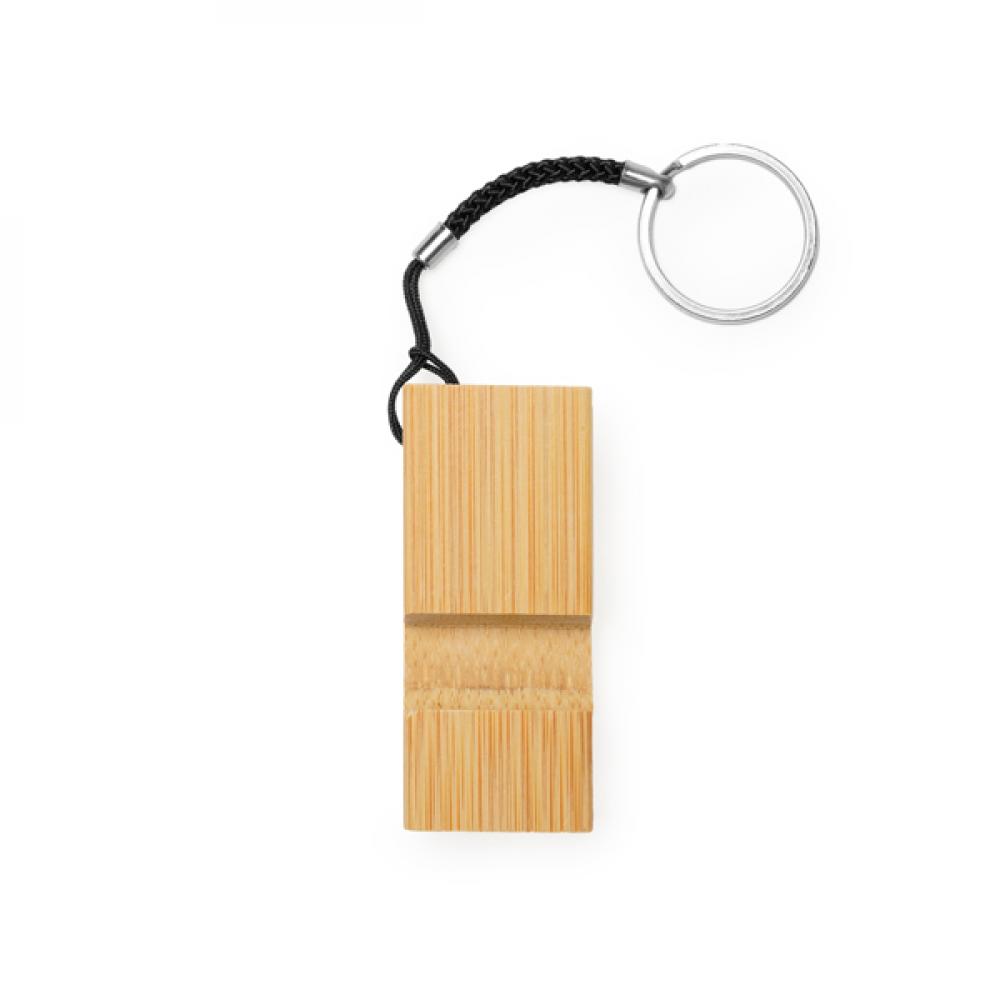 Брелок с функцией подставки для мобильного телефона из бамбука.
