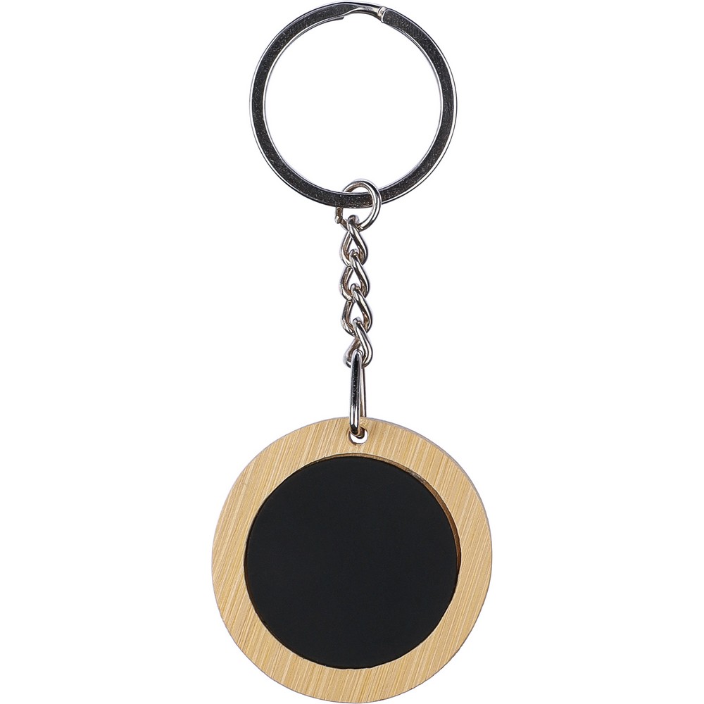 Брелок с черной резиновой гравировкой, после гравировки логотип будет виден в блестящем хроме, упакован в коричневый картонный конверт, изделие из нержавеющей стали и бамбука.