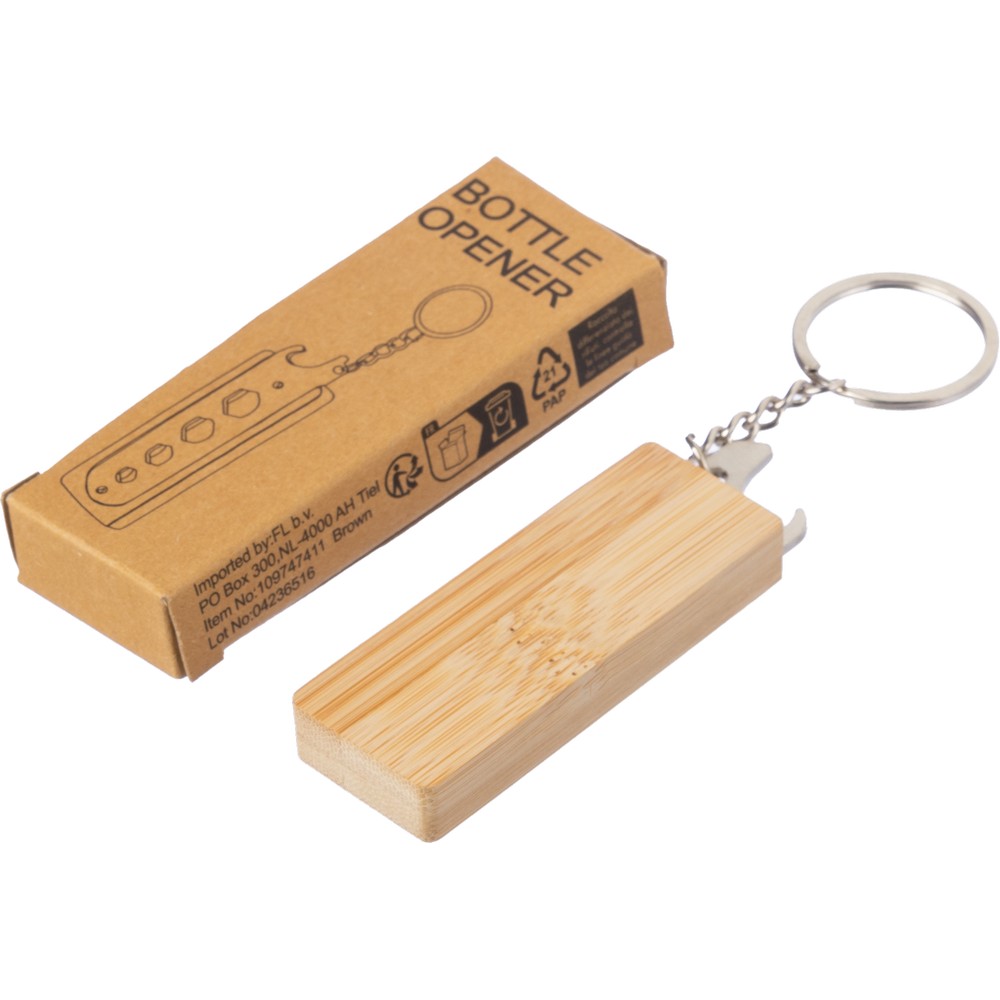 Брелок для ключей с открывалкой для бутылок, оснащенный 4 гаечными ключами, может использоваться во время поездок на природу, упакован в картонную коробку, изготовлен из бамбука.