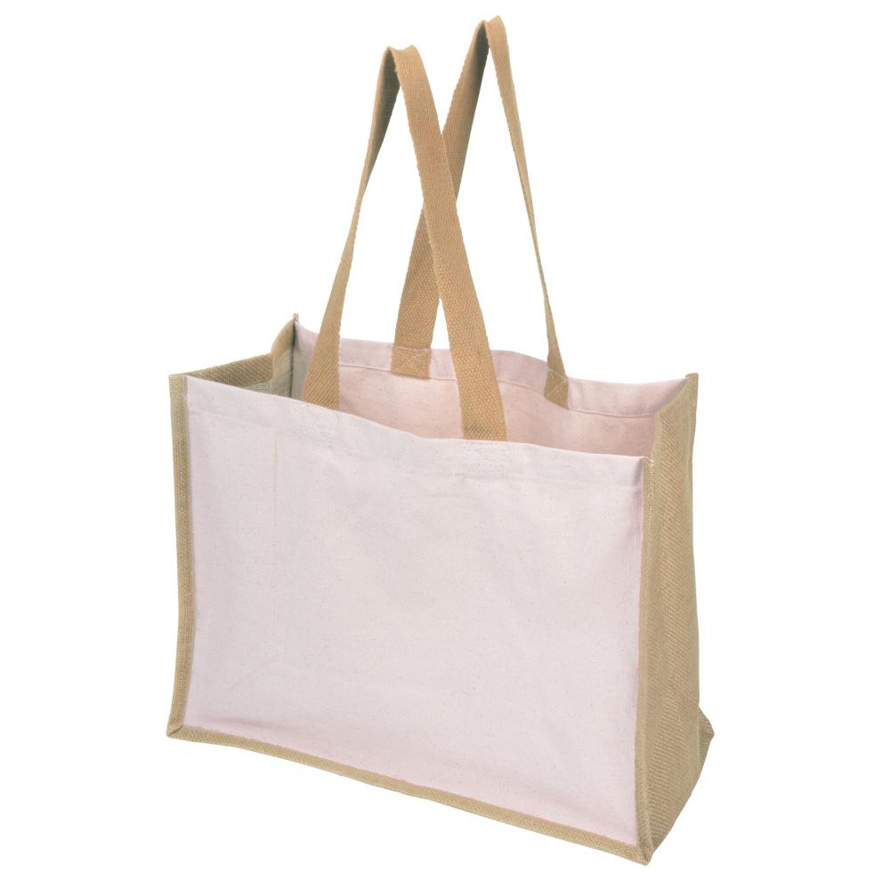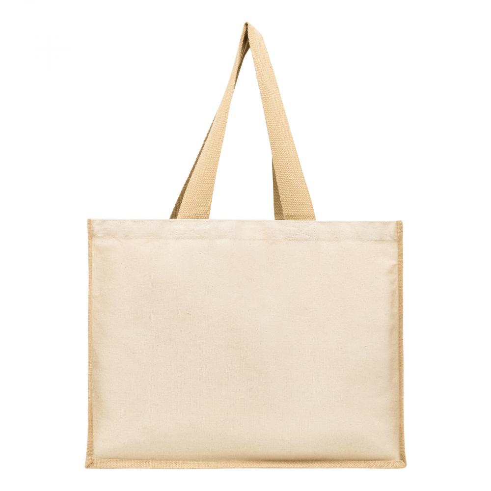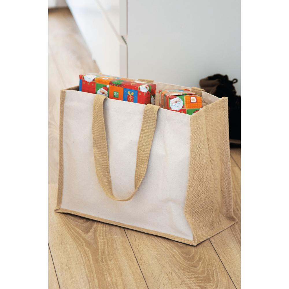 Покупательница БУДУЩЕГО: изготовлена из джута и холста, с длинными хлопчатобумажными ручками и цветной отделкой