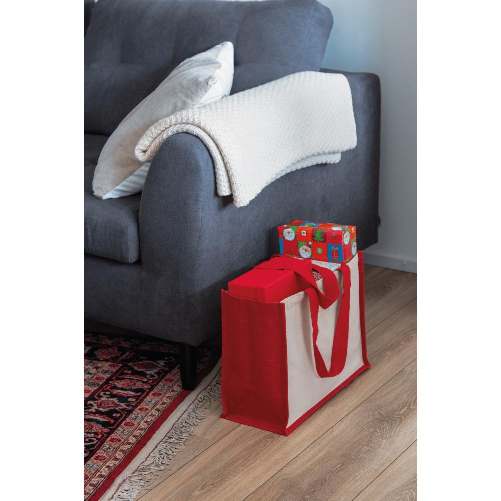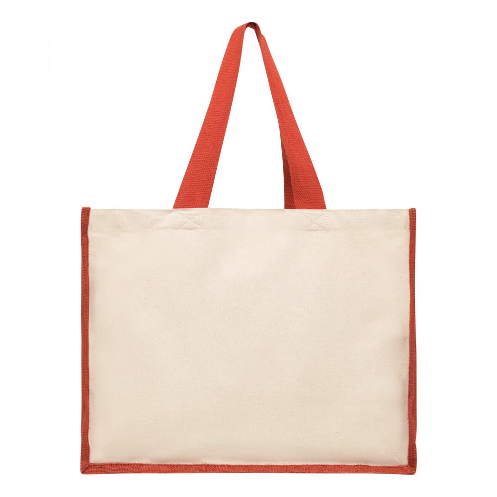 Покупательница БУДУЩЕГО: изготовлена из джута и холста, с длинными хлопчатобумажными ручками и цветной отделкой