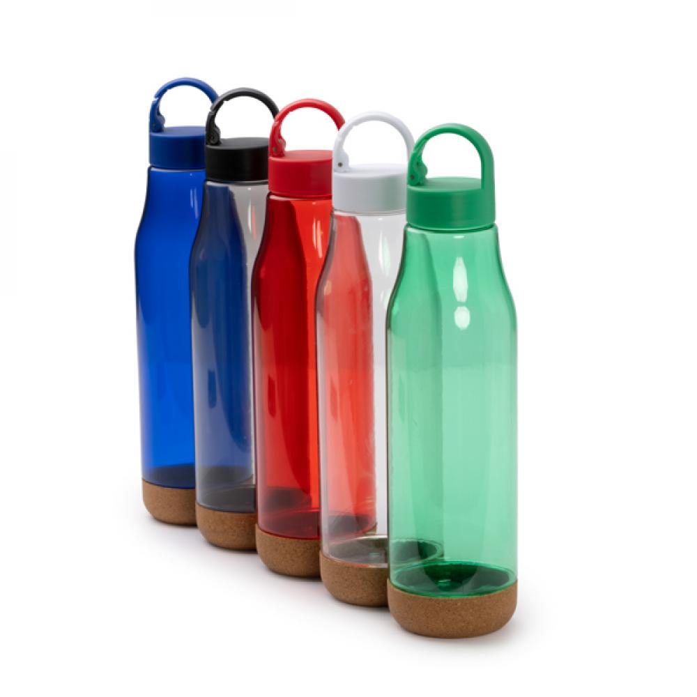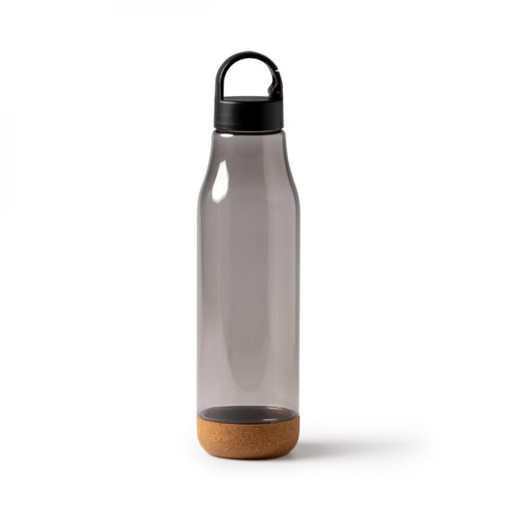 Бутылка с корпусом из RPET и пробкой из пробки. Ручка для переноски с карабином на крышке. Вместимость: 720 мл. Представление в экодизайн упаковке.