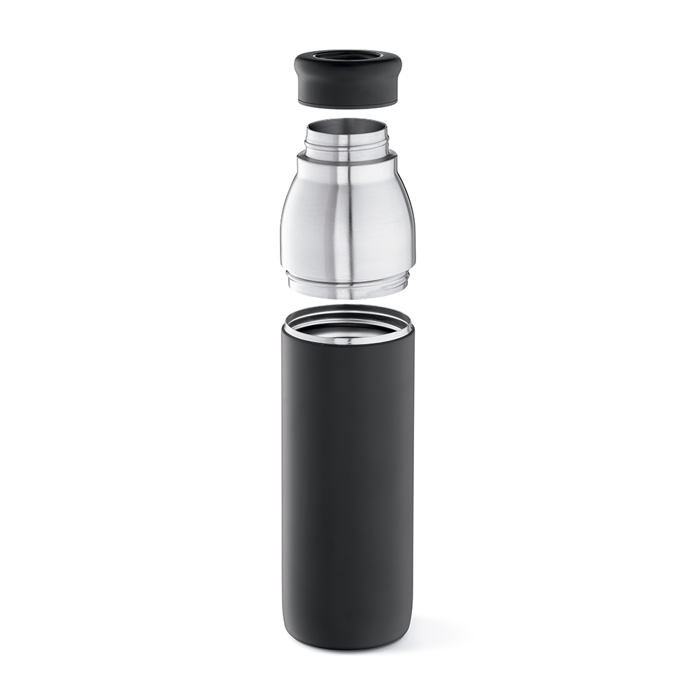 Поднимите уровень вашего увлажнения с помощью бутылки из переработанной нержавеющей стали с двойными стенками объемом 760 мл (720 мл нетто). Это устойчивый выбор, сочетающий стиль и функциональность. Благодаря двум различным крышкам, эта бутылка, превращающаяся в путешественническую чашку, станет вашим экологичным спутником.