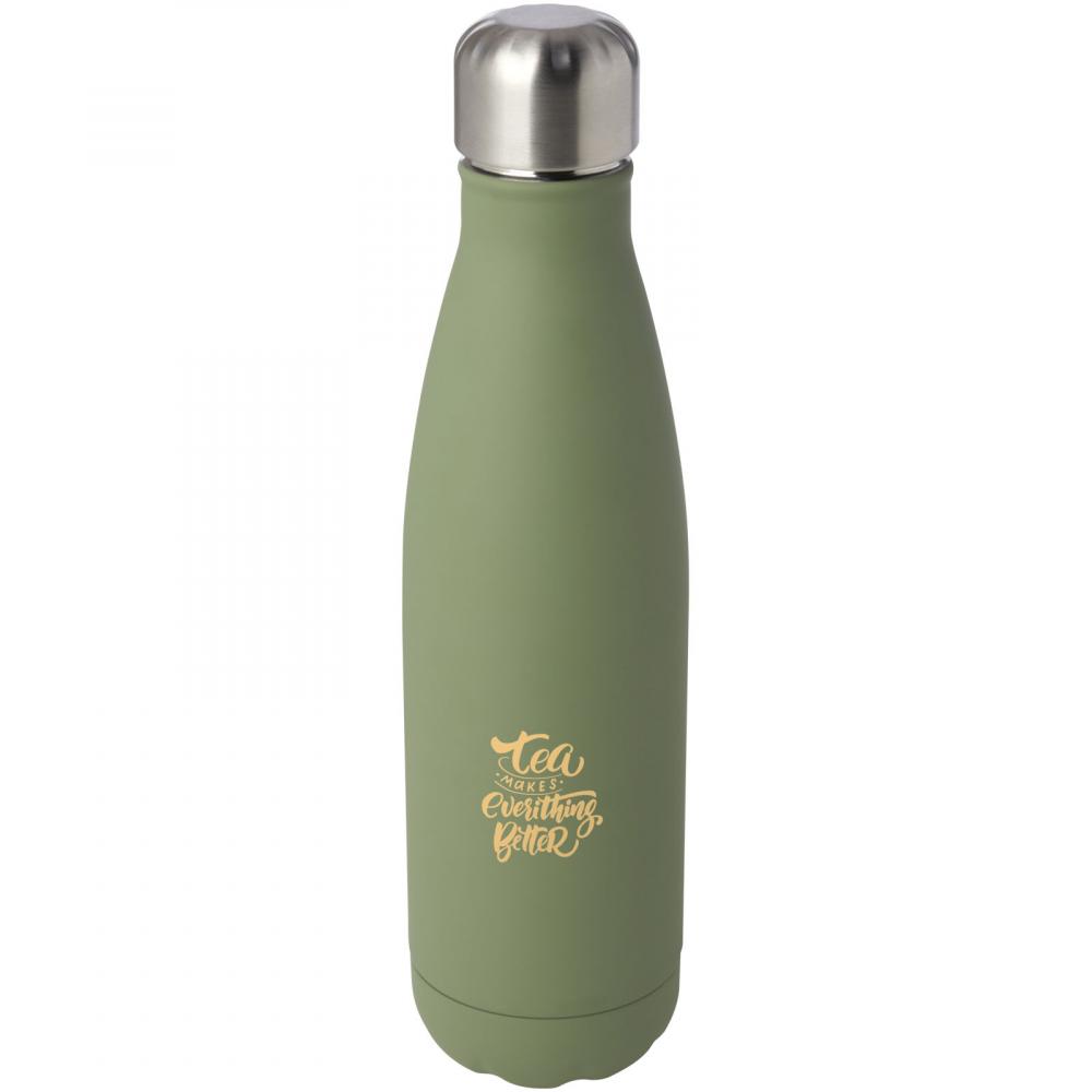 Вакуумная изолированная бутылка из сертифицированной переработанной нержавеющей стали с культовым дизайном, сохраняющая напитки горячими или холодными в течение нескольких часов. Оснащена основанием, которое подходит для большинства подстаканников, эта стильная бутылка для воды является идеальным рекламным предметом. Протестирована и одобрена в соответствии с немецким законодательством о безопасности пищевых продуктов (LFGB) и протестирована на содержание фталатов в соответствии с регламентом REACH. Объем составляет 500 мл. Поставляется в подарочной коробке из переработанного картона.