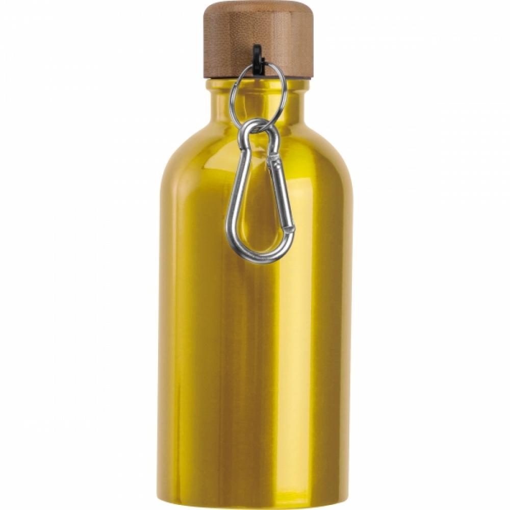 Маленькая бутылка для питья из нержавеющей стали с практическим карабином, объемом 400 мл и герметичной завинчивающейся крышкой с бамбуковой крышкой.
