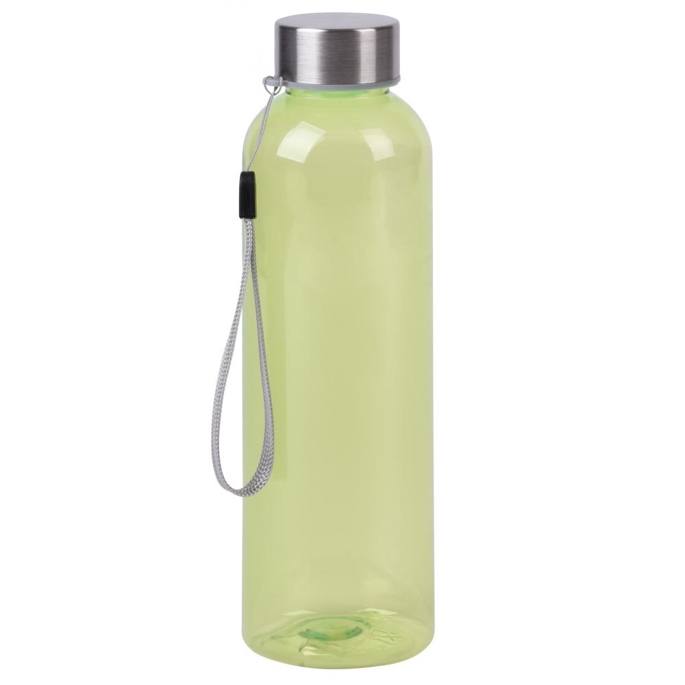 Бутылка для питья SIMPLE ECO: изготовлена из переработанного ПЭТ, завинчивающаяся крышка из нержавеющей стали с петлей для переноски, вместимость около 500 мл