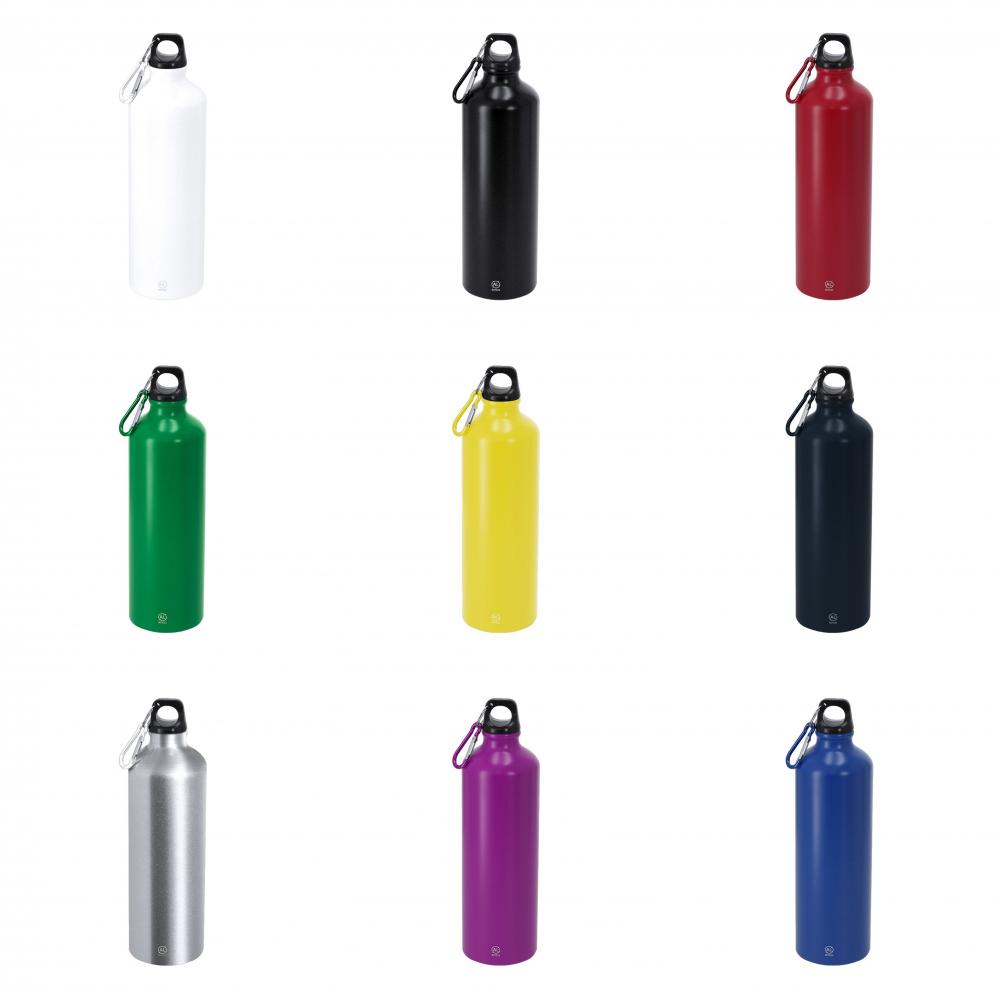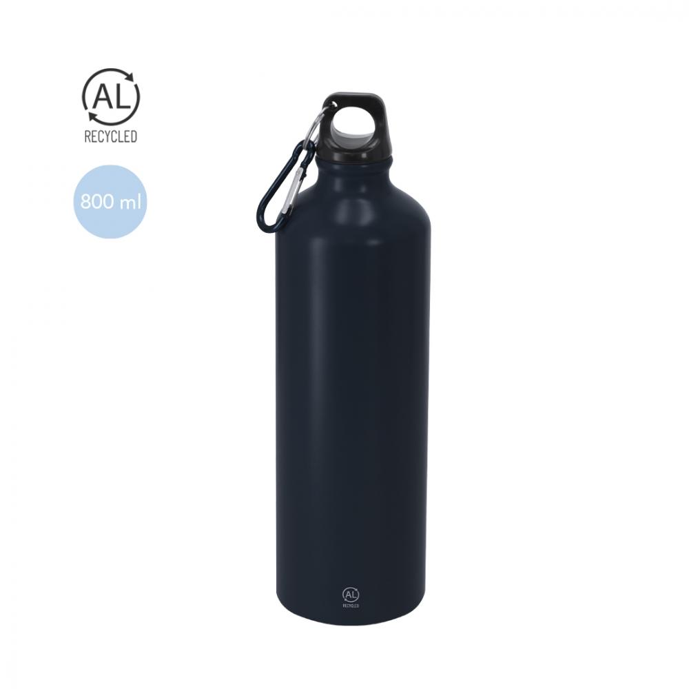 Бутылка объемом 800 мл. Изготовлена из прочного и экологически чистого переработанного алюминия. С черной крышкой на винт и подходящим карабином для удобной транспортировки. Матовая отделка корпуса. Без содержания BPA. Включает в себя этикетку "Переработанный алюминий". Переработанный алюминий - материал с почти бесконечными возможностями для переработки, не теряющий своих первоначальных свойств и потребляющий меньше энергии в этом процессе.