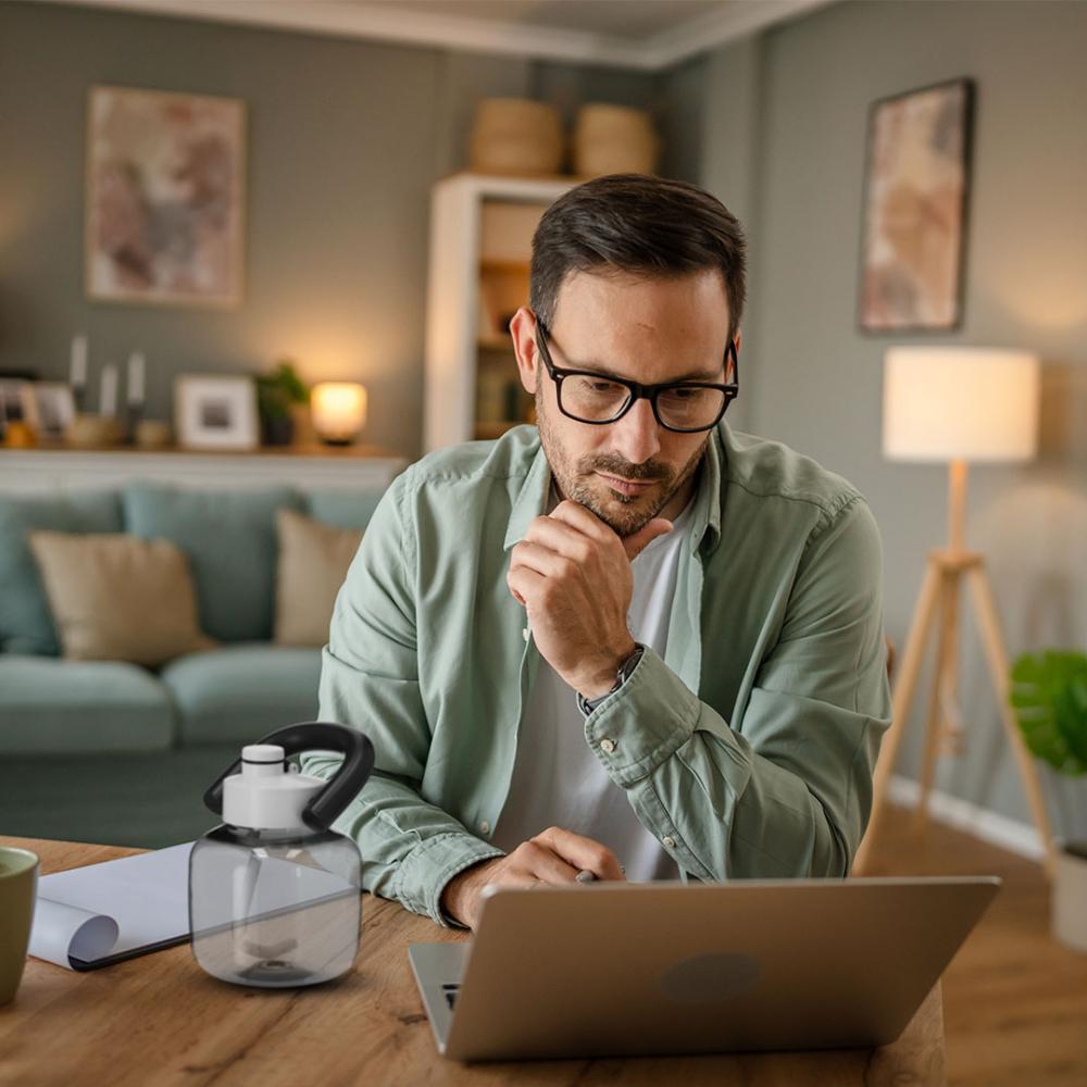 Прочная ПЭТ-бутылка емкостью 1,8 л. Имеет оригинальную форму гири и выполнена в полупрозрачном глянцевом цвете. В комплекте завинчивающаяся крышка для оптимальной герметизации, соломинка и прочная ручка для транспортировки. Не содержит Бисфенол-А. Материал RPET изготовлен из переработанного пластика, что способствует повторному использованию пластиковых отходов и способствует устойчивому развитию планеты.