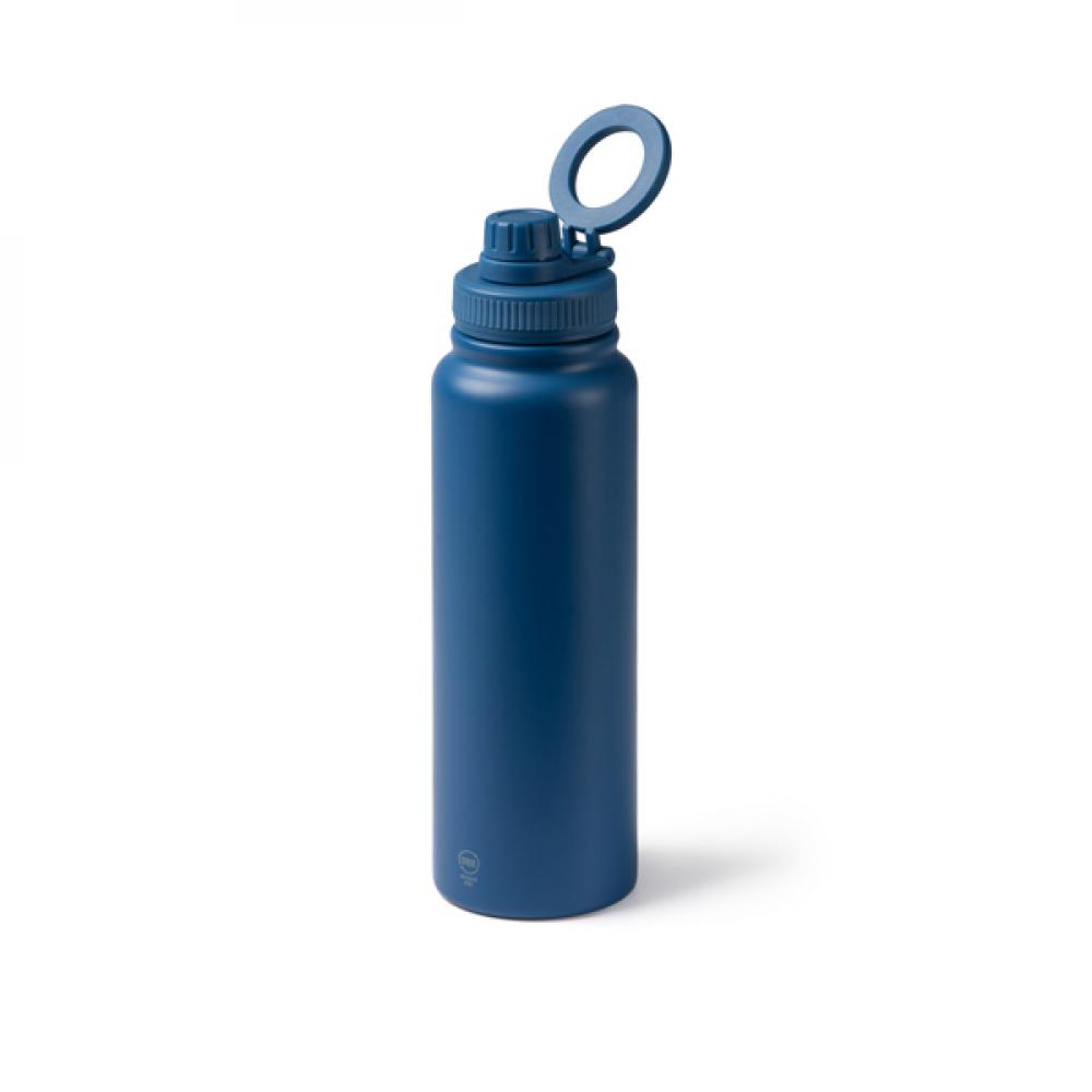 Двухстенная термос-бутылка из переработанной нержавеющей стали 304 с крышкой с магнитным кольцом для держателя мобильного телефона. Антискользящая резина на дне. Объем: 1 л. Представлено в экологической упаковке.