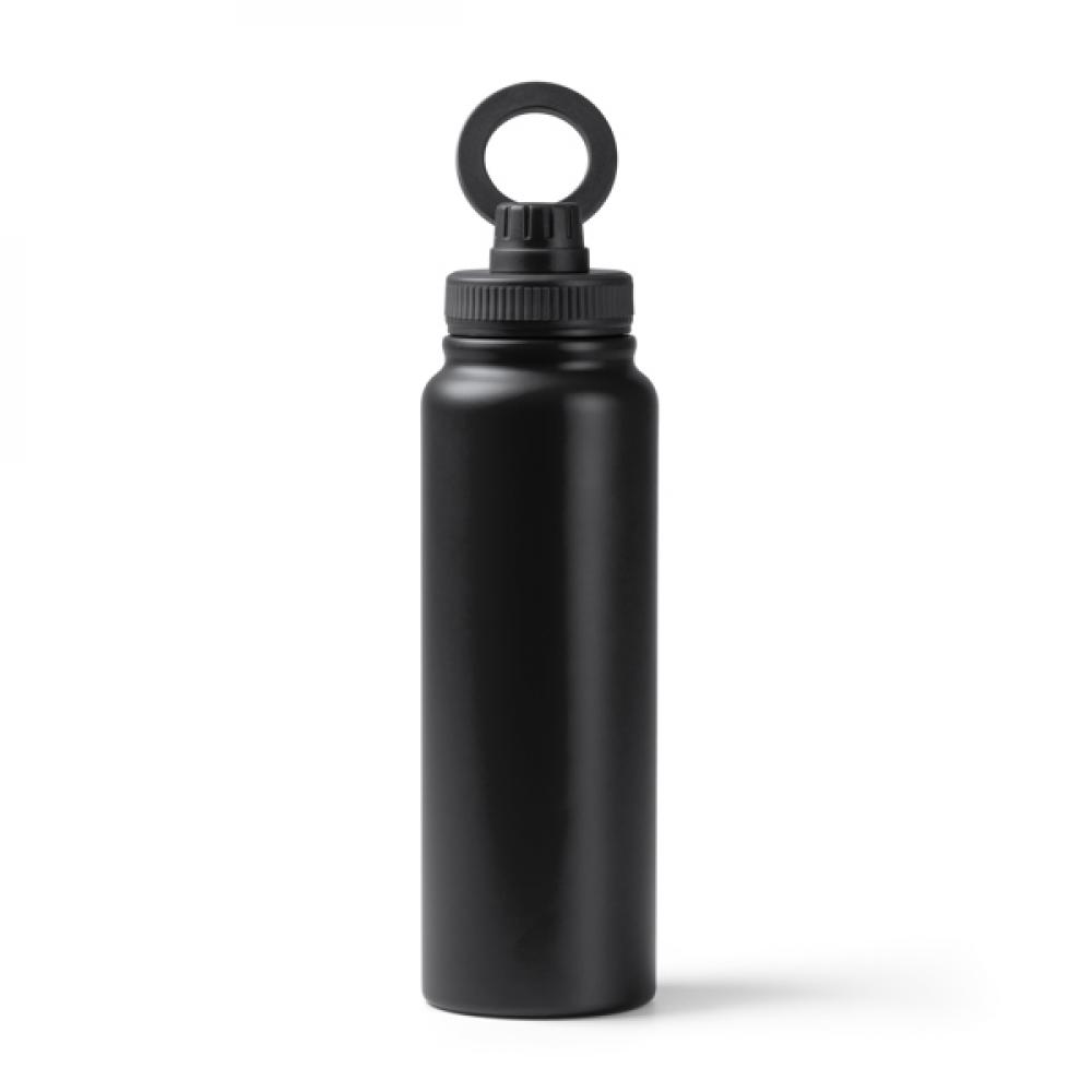 Двухстенная термос-бутылка из переработанной нержавеющей стали 304 с крышкой с магнитным кольцом для держателя мобильного телефона. Антискользящая резина на дне. Объем: 1 л. Представлено в экологической упаковке.
