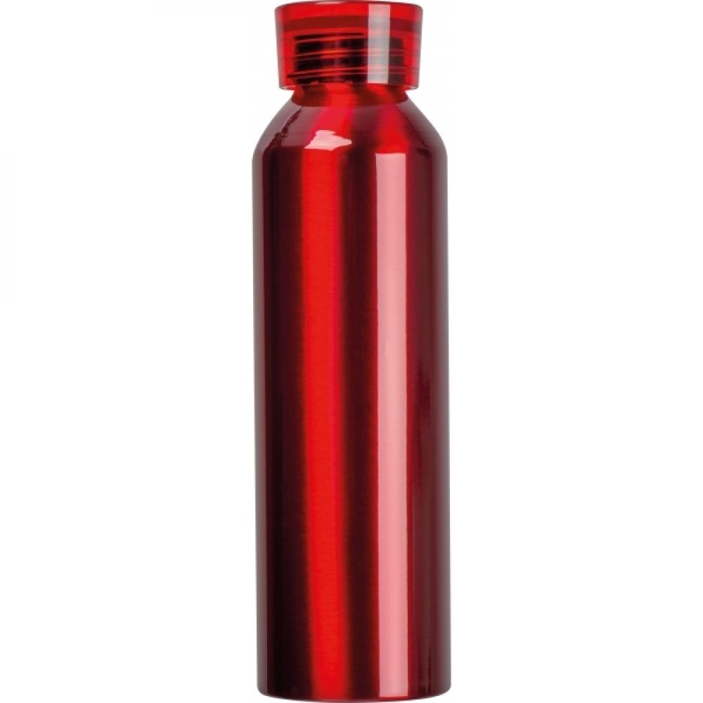 Бутылка для воды из переработанного алюминия с пластиковой крышкой, силиконовым ремешком для переноски и объемом 600 мл. Экологичная и практичная для использования в дороге.