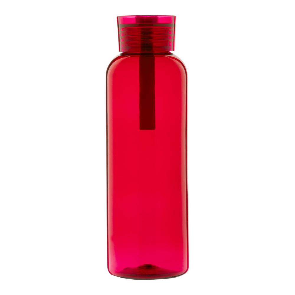 Бутылка из переработанного пластика с крышкой подходящего цвета и силиконовым ремешком для переноски, 500 мл.