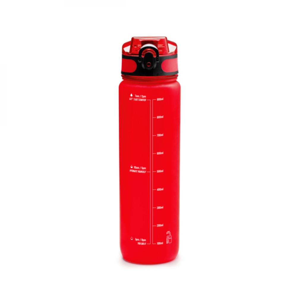 Прозрачная бутылка из тритана с крышкой с выпускным отверстием и удобной ручкой для переноски. Мотивационные метки времени и индикатор вместимости. Вместимость: 1 л. Поставляется в дизайнерской коробке.
