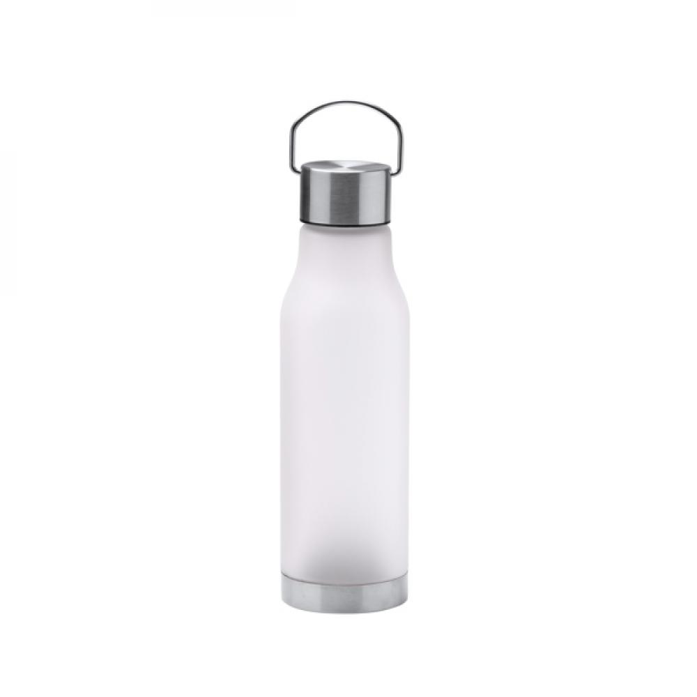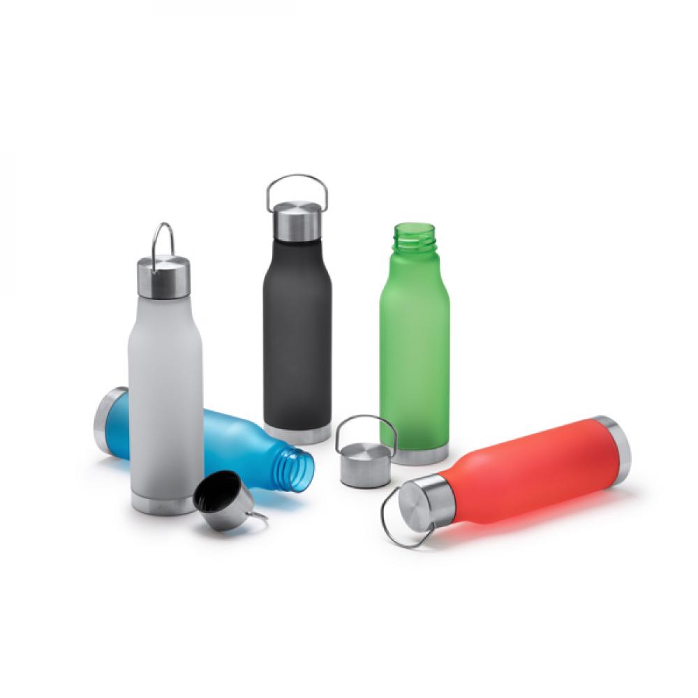 Флакон RPET с прозрачным матовым покрытием, крышкой, ручкой и дном из нержавеющей стали. Объем 600 мл. Упакован в эко-коробку.